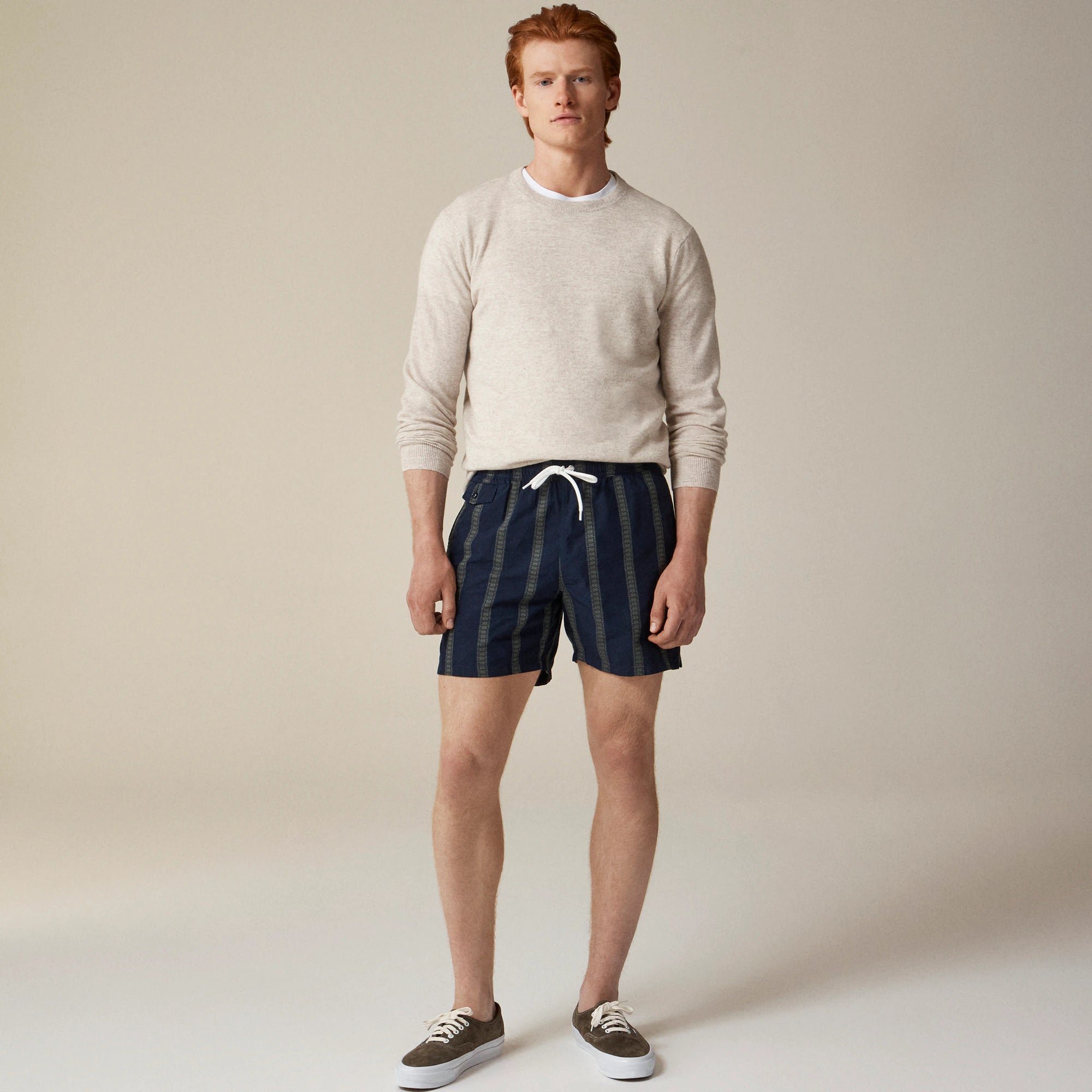 We've updated the classic swim trunk with a modern fit while retaining its old-school drawstring waist and adding a mesh lining to keep you comfortable in the water (and when you're lounging poolside or on the beach). This cotton-nylon blend style features textured dobby stripes and a vintage-inspired, buttoned coin pocket at the right hip.