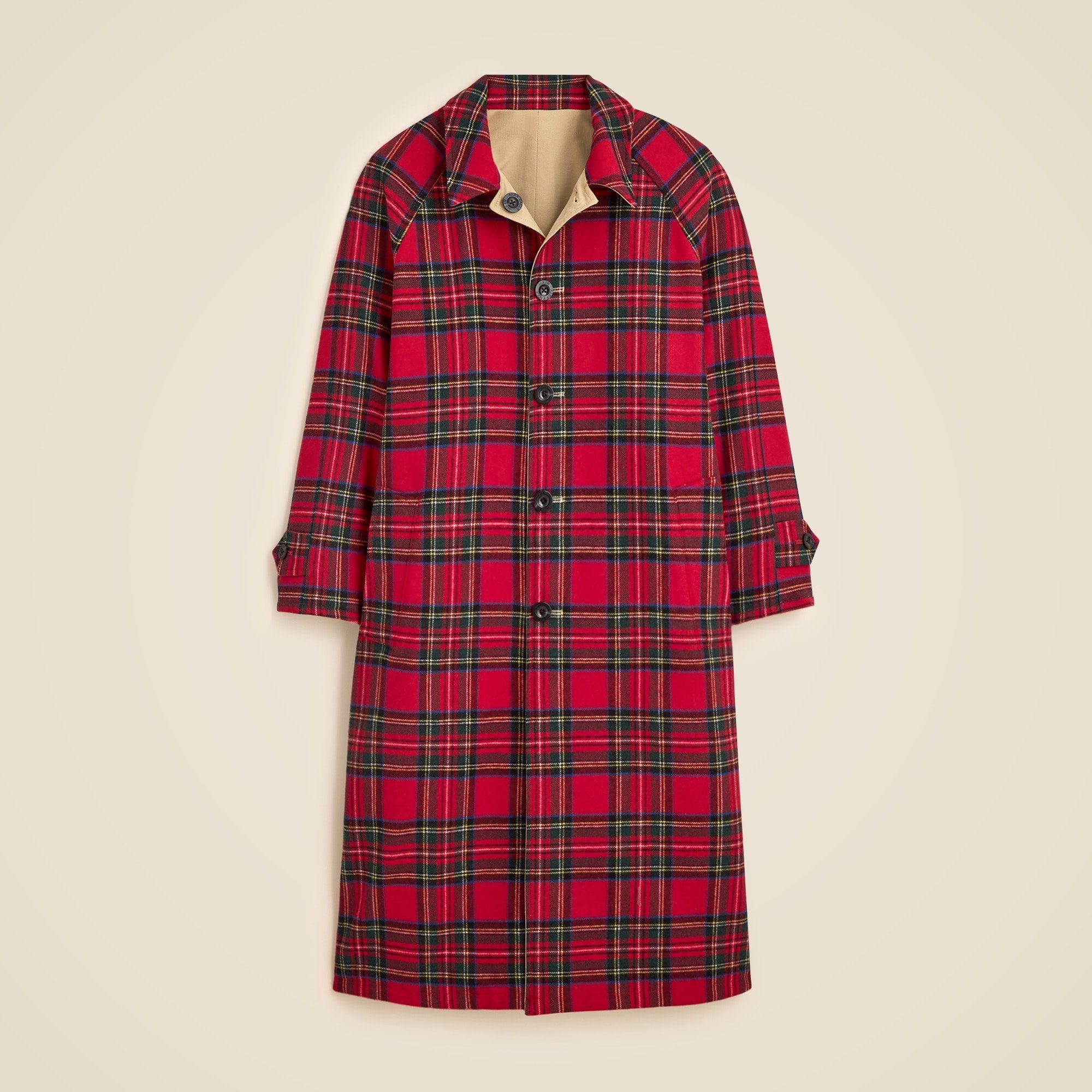 Introducing Alex Eagle X J.Crew. We collaborated with the London-based creative director and designer Alex Eagle on a capsule of timeless pieces infused with her brand's signature tailoring and sporty touches. Tailored from a sturdy, subtly stretchy cotton blend, this streamlined silhouette is fitted with timeless details like raglan sleeves, button tabs and clean welt pockets. Flip it inside out to reveal a bold tartan lining that doubles as a statement outer layer.
