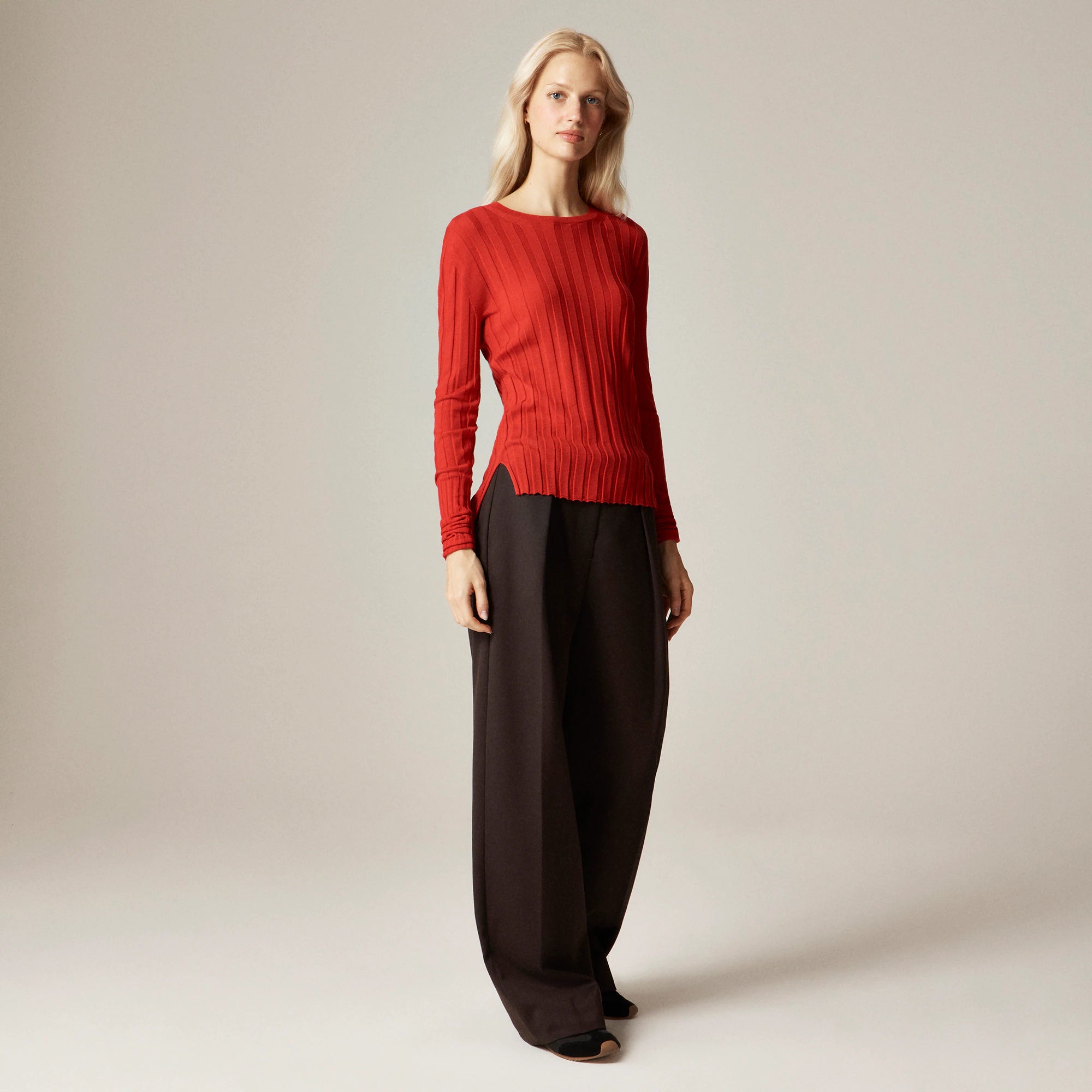 Introducing Alex Eagle X J.Crew. We collaborated with the London-based creative director and designer Alex Eagle on a capsule of timeless pieces infused with her brand's signature tailoring and sporty touches. This easy layer comes with longer, subtly exaggerated sleeves and ultrasoft 100 percent merino wool that's lightweight-yet-warm.