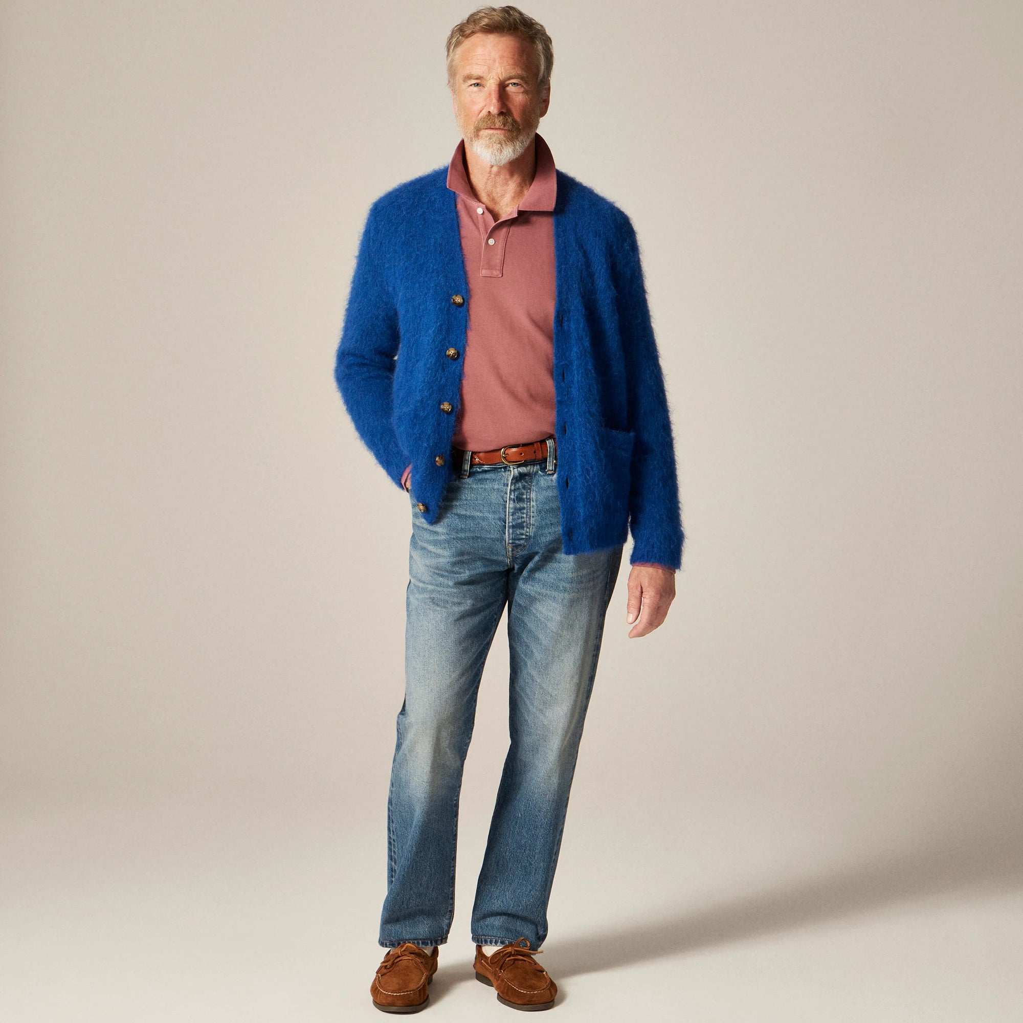 The fuzziest sweater we make is the perfect layer to throw on over a tee or a button-up. It features a warm alpaca blend with a soft, "hairy" texture that will work well with just about anything. Fun fact: During the time of the Inca Empire in ancient Peru, alpaca wool was considered so luxurious that it was reserved exclusively for royalty.