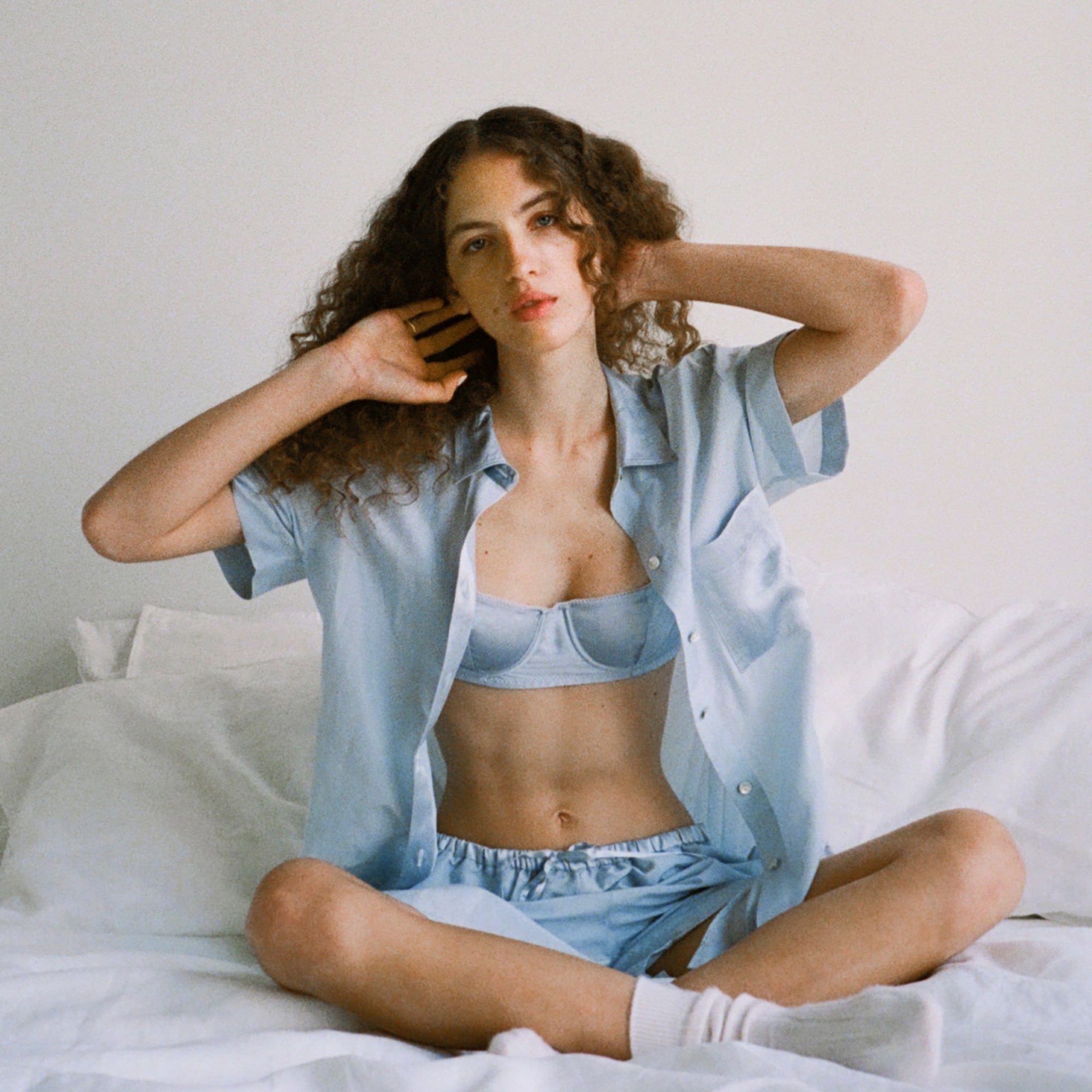 Introducing Araks X J.Crew. We collaborated with designer (and J.Crew alum) Araks Yeramyan on an exclusive collection of pajamas and lingerie that celebrates our shared love of unexpected color combinations and thoughtful details. This airy set comes with a short-sleeve top and an easy-fitting short, complete with silk trims and a subtly sheer finish. Plus, the silk in this style is bluesign®-approved and crafted at a LEED®-certified facility whose manufacturing process uses less water and energy—and it's dyed without hazardous chemicals.