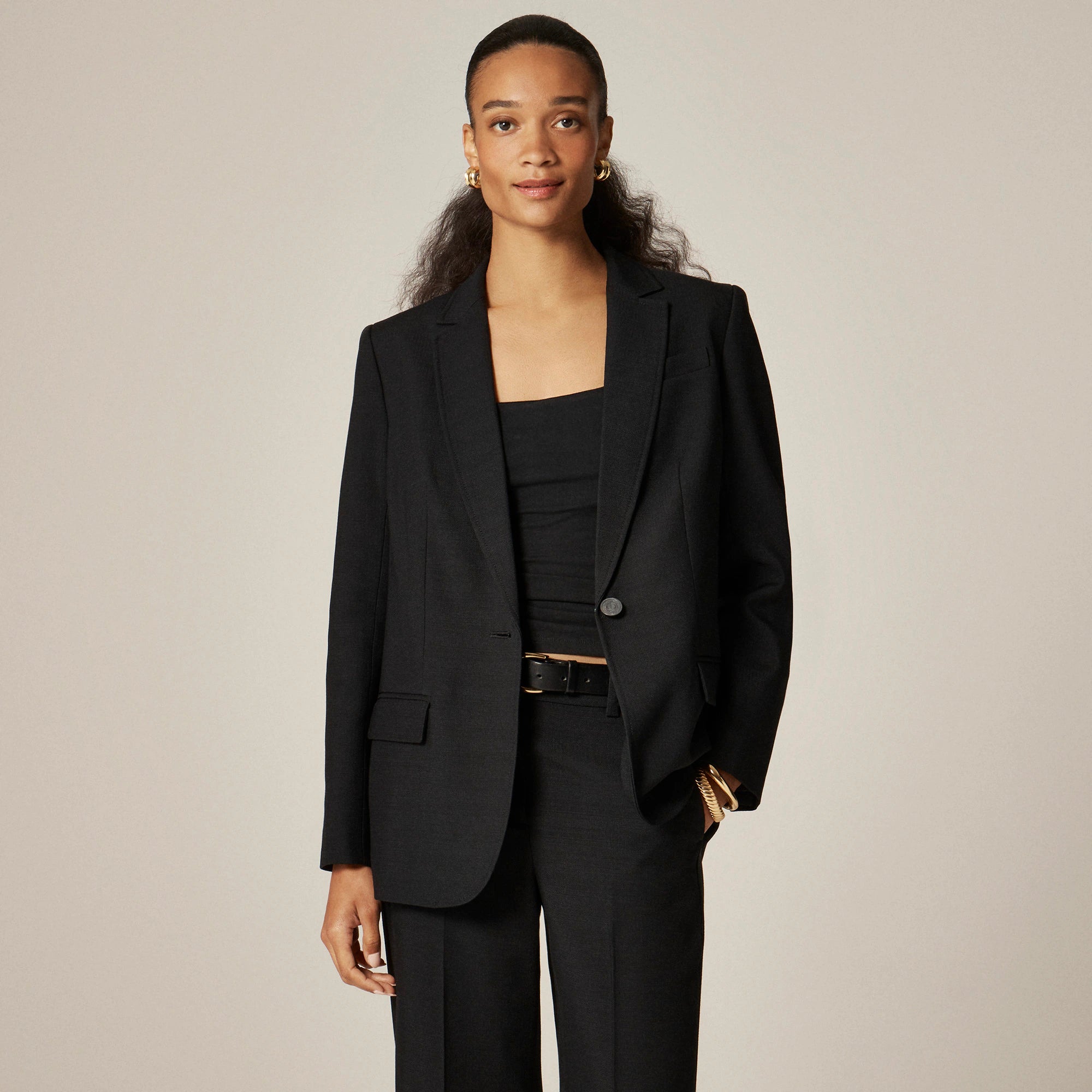 A modern take on classic tailoring. It comes in a relaxed, subtly oversized fit with a single button closure and a notched lapel for a polished finish. Plus, it's made from our new luster canvas, a modern take on vintage-inspired suit fabrics with a summery basketweave texture, lots of drape and a lightweight feel.