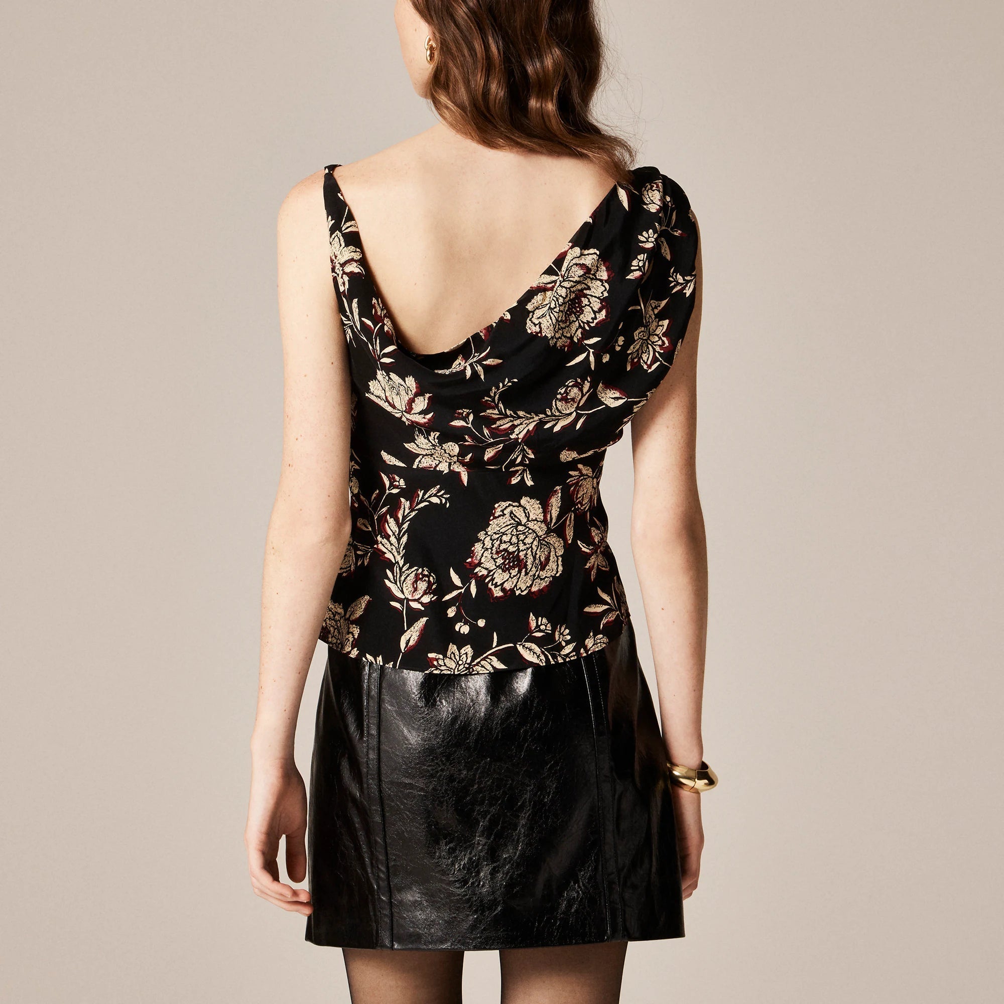 The perfect going-out top. This easy, elevated style has a draped neckline, asymmetical straps and a flowy silhouette. We can't decide what we love more: the eye-catching floral print or the drapey crepe de chine fabric that has a soft, lightweight finish.