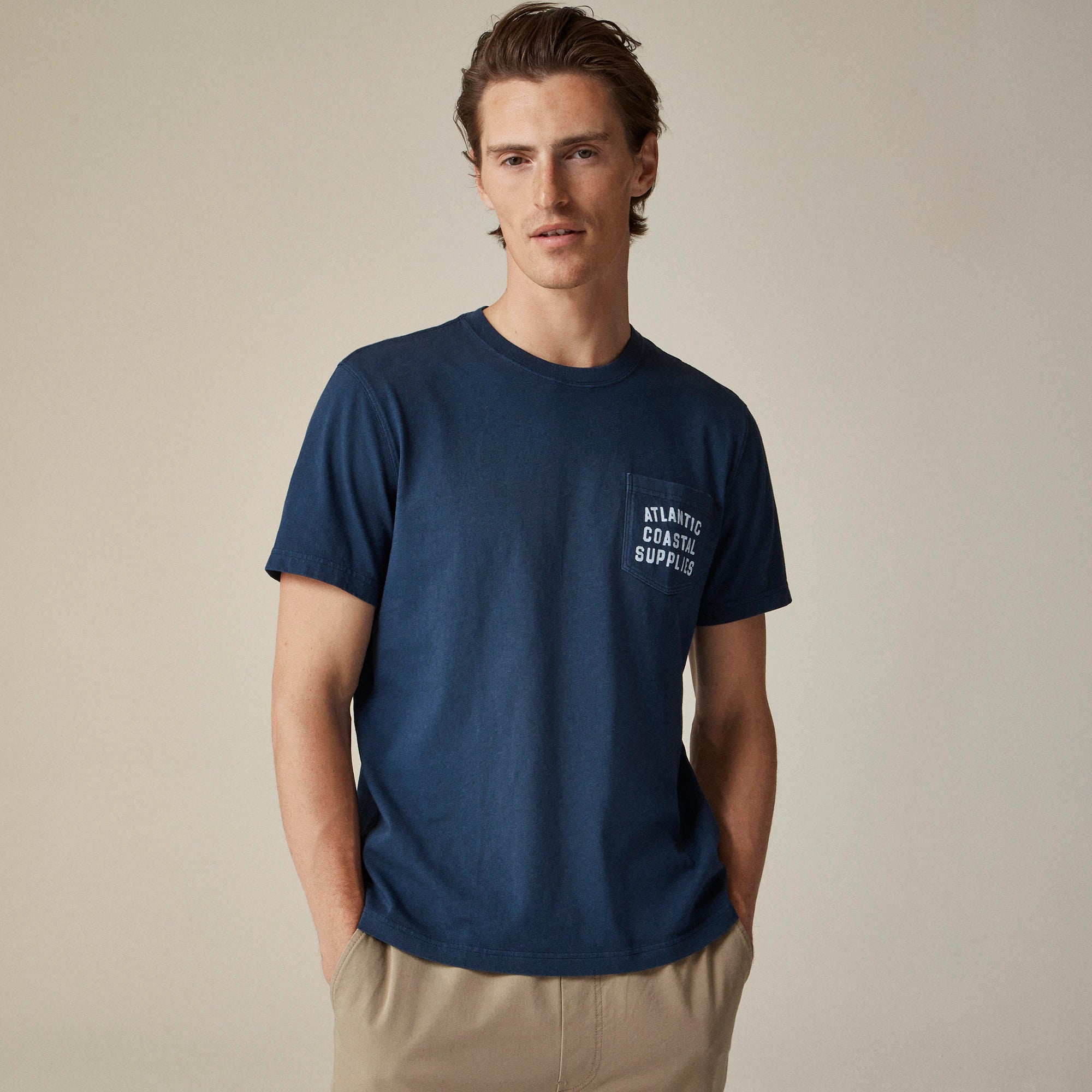 Introducing our exclusive new collaboration with Atlantic Coastal Supplies. Founded in West Penwith—a coastal community in England known for its dramatic cliffs, golden beaches and world-class surf—Atlantic Coastal Supplies specializes in gear and apparel for any aquatic adventure. This limited-edition collection is inspired by our shared coastal heritage and affinity for all things nautical. This graphic T-shirt with the ACS logo is everything you love about vintage finds with none of the downsides. It's perfectly faded with a comfortable, well-worn feel, thanks to our specialized wash process and subtly textured 100 percent cotton (30 percent of which is recycled). The fit is slightly more relaxed than our Broken-in tee, with an additional 1" in the chest and 3/4" in length, which hews closely to coveted old-school styles.