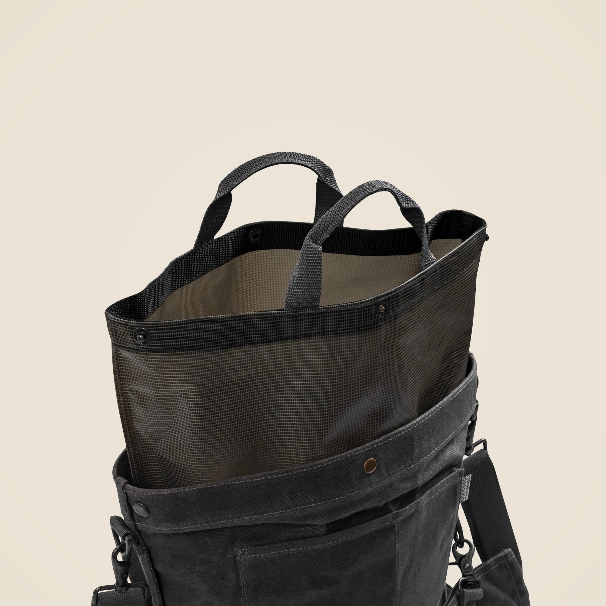 Inspired by vintage orchard design, the Gathering Bag offers versatility in use, wearing, emptying and care. Its convertible straps allow for comfortable chest or back carrying, while its drop-out bottom makes quick work of emptying the harvest. Constructed of weather- and water-resistant paraffin-waxed canvas and complete with a watertight, removable liner, the Gathering Bag is the essential foraging and harvesting partner.
