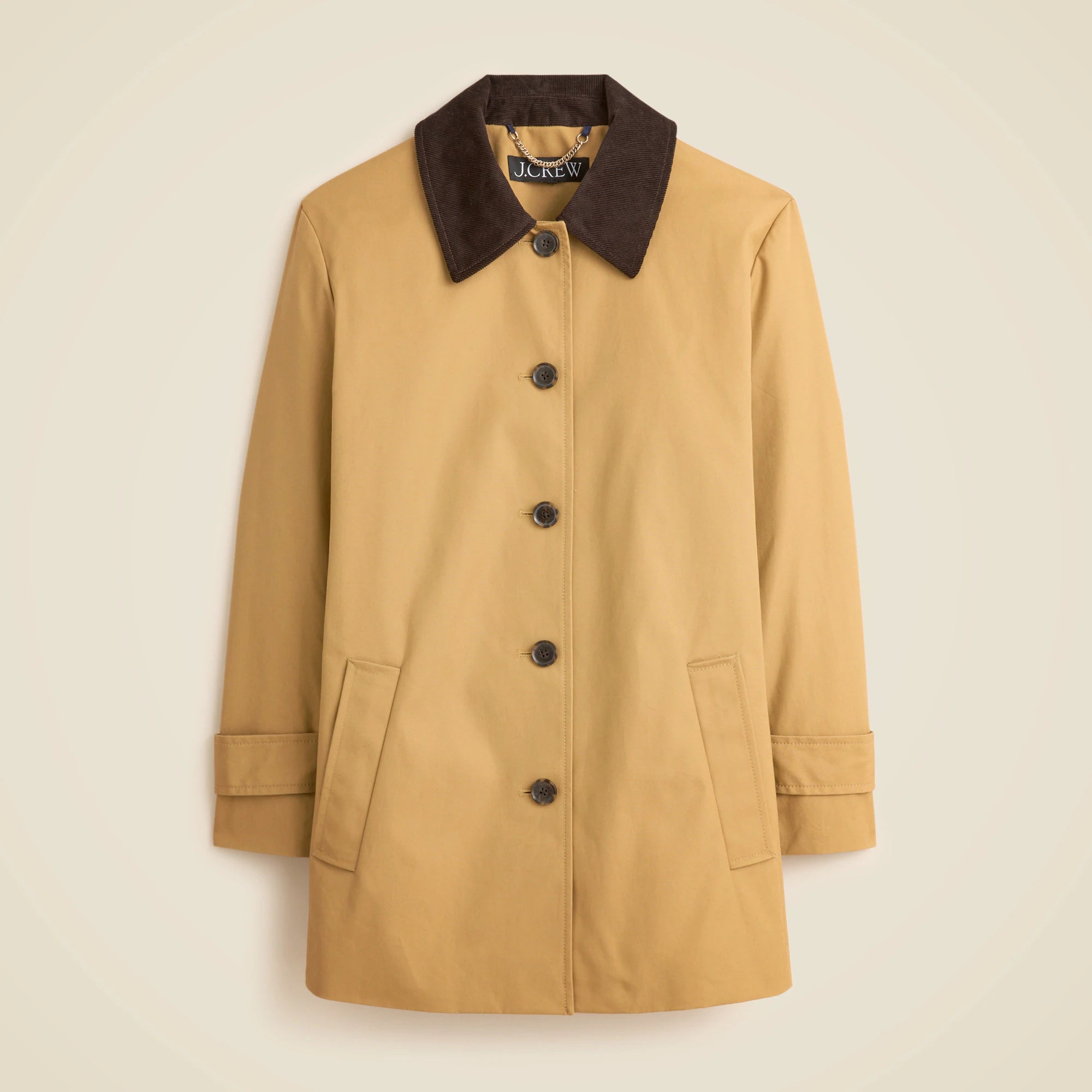 A J.Crew icon since 1983. . .Always evolving, this is the latest take on our signature Barn Jacket, a style that looks sleek and polished no matter what you're wearing underneath. A couple of can't-miss details: the water-repellent cotton fabric, leopard-print lining and classic corduroy collar.