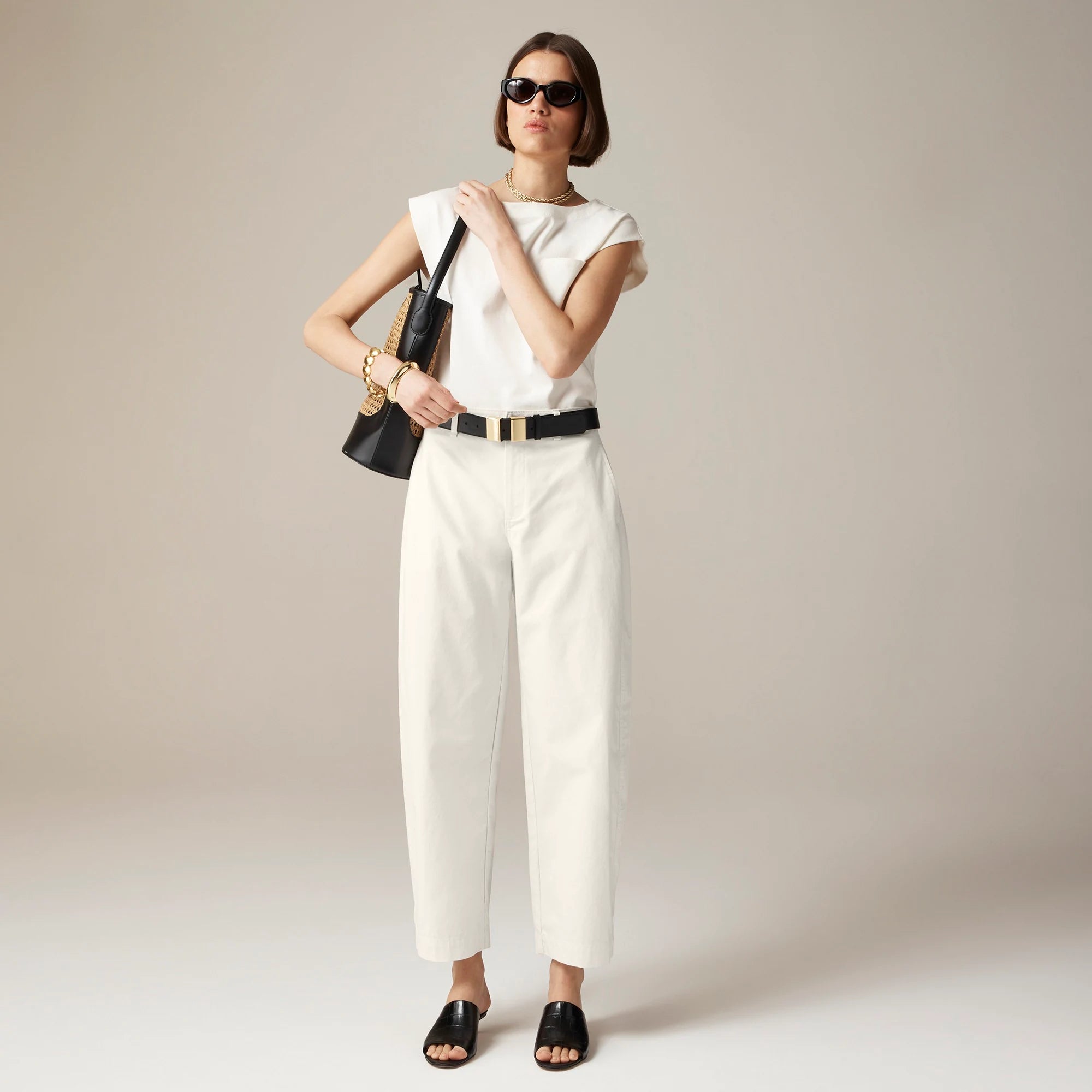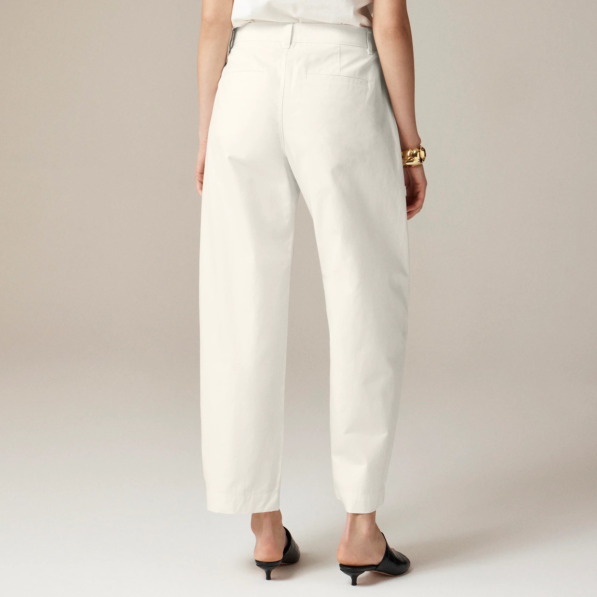 A trending take on the everyday trouser. It's designed with a flattering high rise, a bow-shaped leg that tapers at the ankle and side-seam details that add structure to the shape. Plus, it's crafted from a lightweight-yet-sturdy cotton blend that's perfect for warmer days ahead.