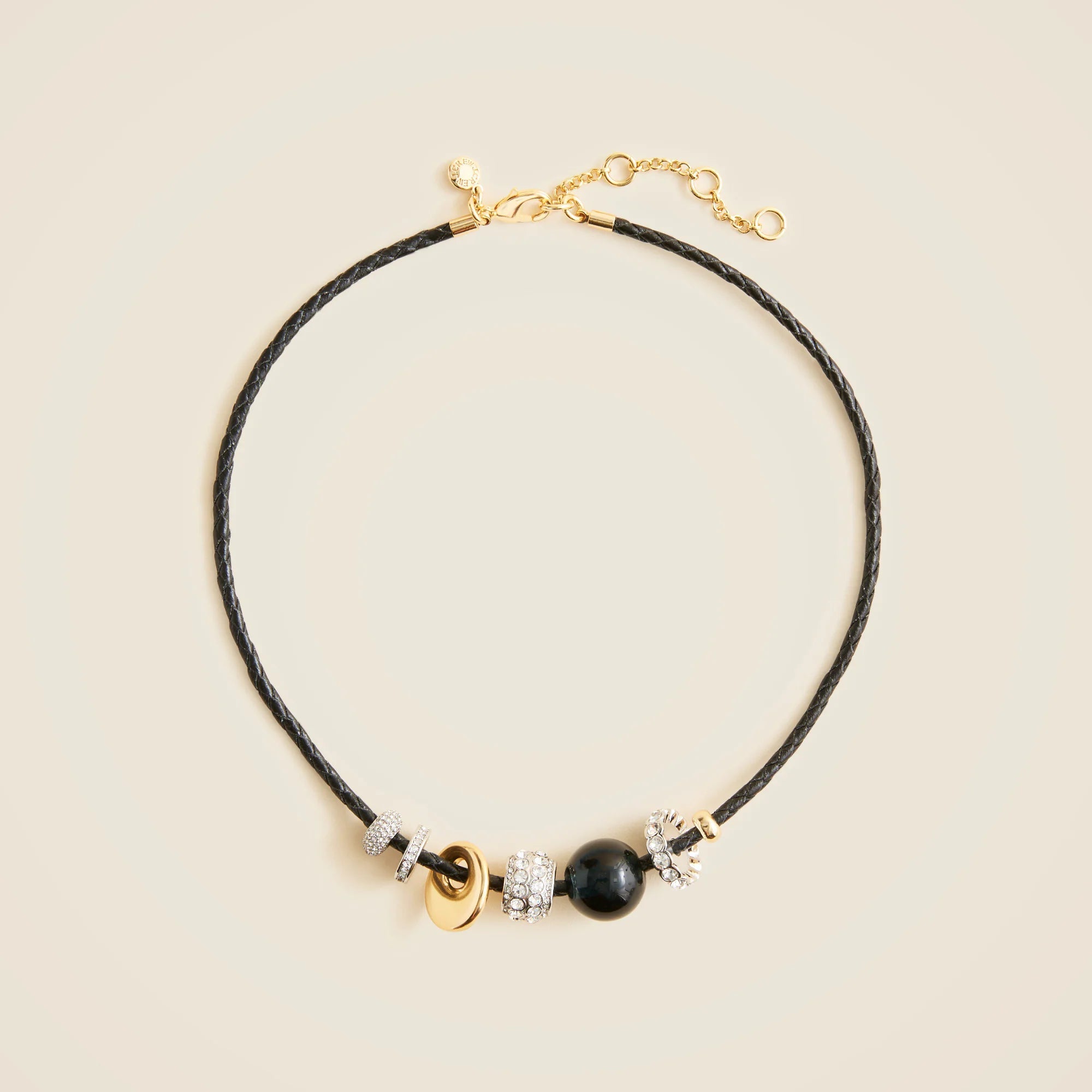 Add sparkle to special days (and every day!) This leather cord necklace featuring pavé crystal-embellished beads always looks good. Want to keep your jewelry looking like new? We recommend removing it before showering or exercise and putting it on after applying hair products or perfume. To clean your pieces, polish them with a soft, dry cloth—and when not wearing, store them in a pouch or jewelry case.