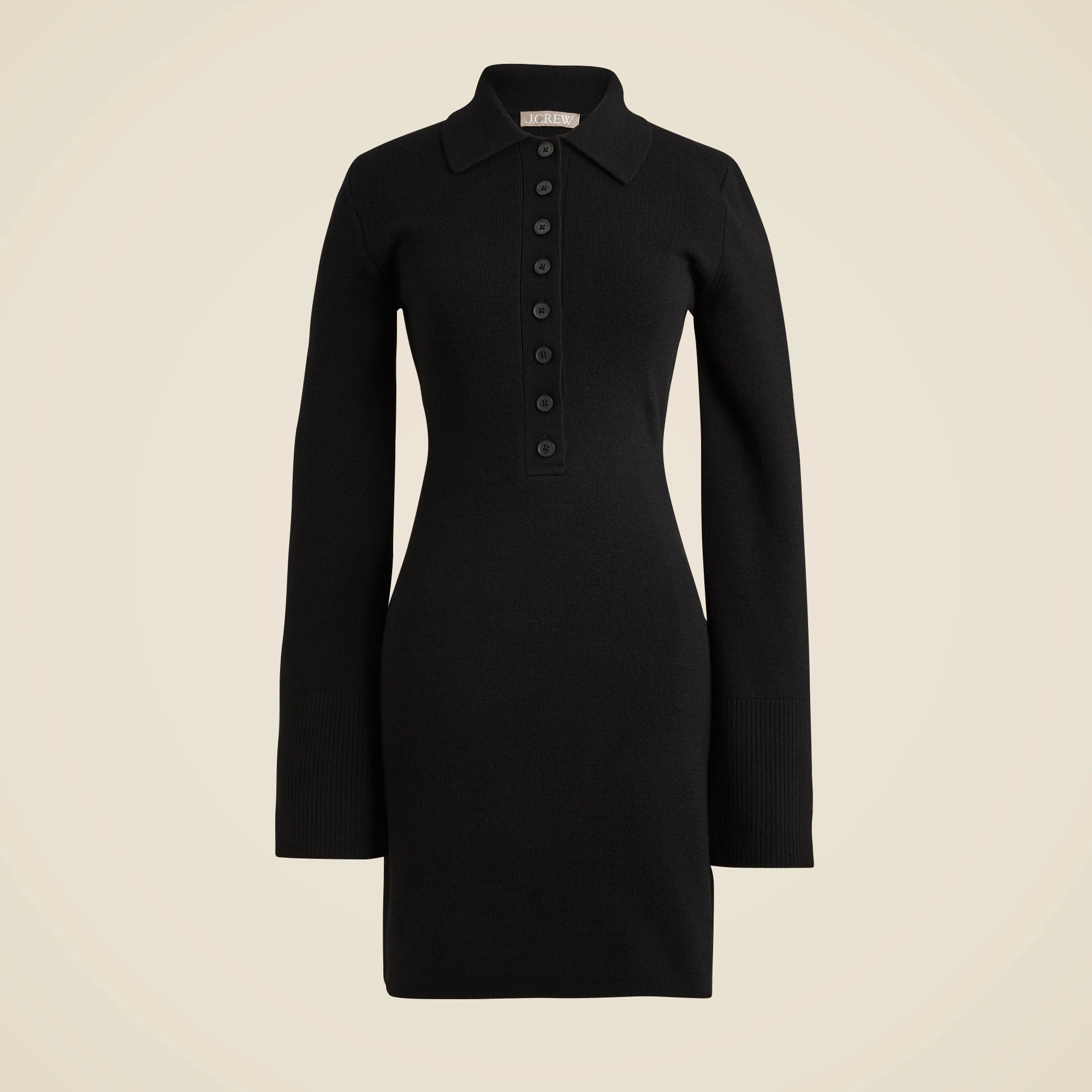 A polished take on the sweater-dress. This style is crafted in ultrasoft 100 percent merino wool and comes in a subtly structured silhouette that's fitted at the waist and easy through the sleeves. The collared neckline and button details nod to classic polo styling, while the mini length adds a modern touch.