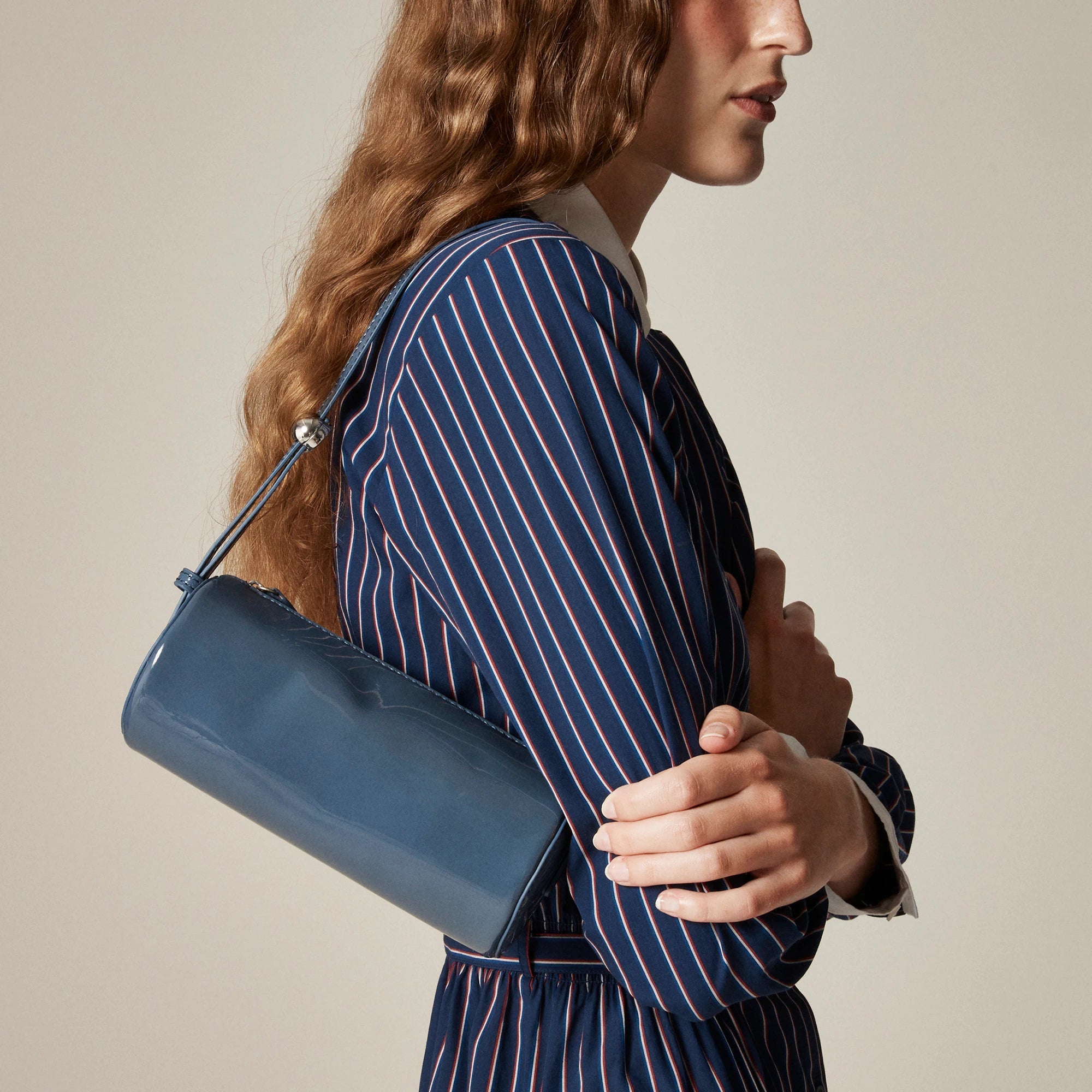 Meet the bag of the season. This eye-catching pencil bag features a cool rounded silhouette that fits all the essentials (so you can take it anywhere and everywhere). It's finished with a gold bauble detail to adjust the length of the strap, plus patent leather for a hint of shine.