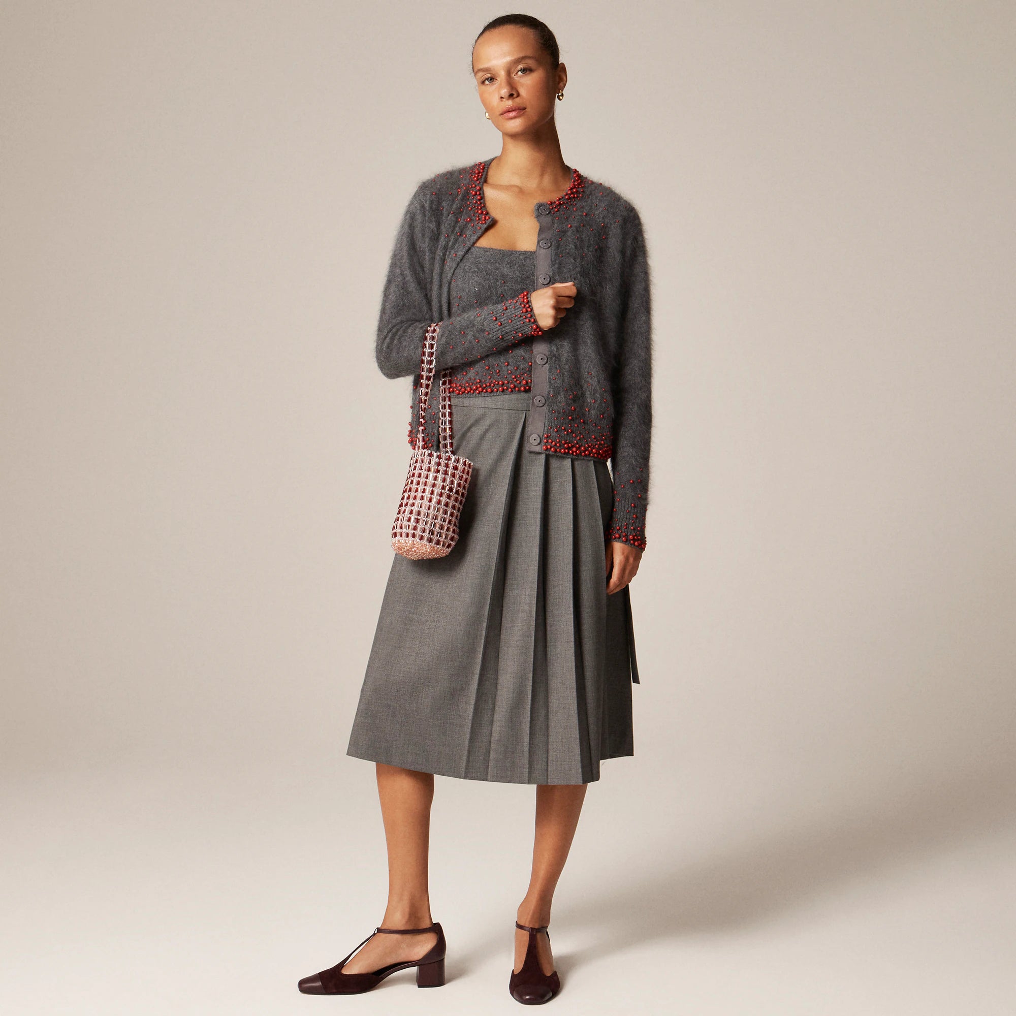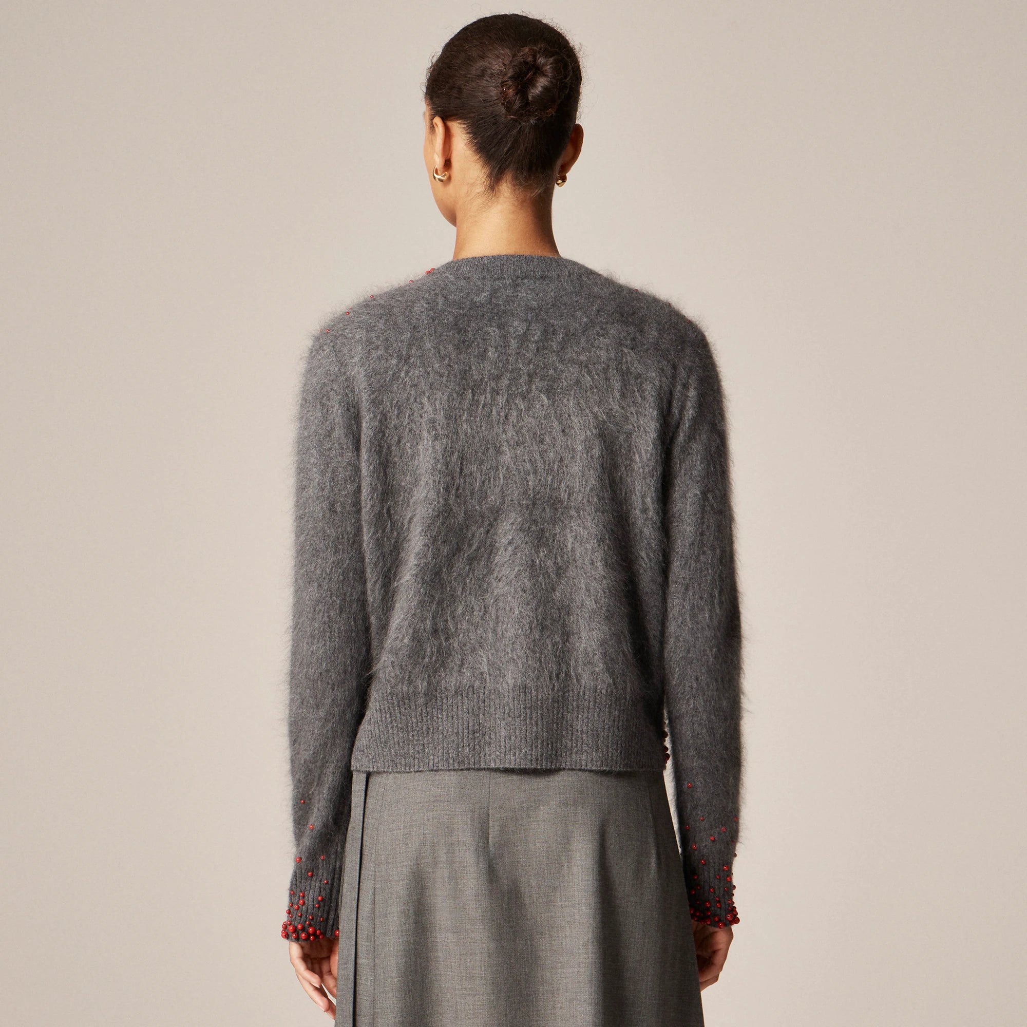 You've never seen cashmere like this. Our design team spent months developing our luxe brushed cashmere. It's crafted with longer fibers that are specially washed for an extra-fuzzy texture that's unlike anything you've felt before. This style comes with beaded details along the collar, cuffs and hem and pairs perfectly with the matching skirt and tank for an impossibly soft set.
