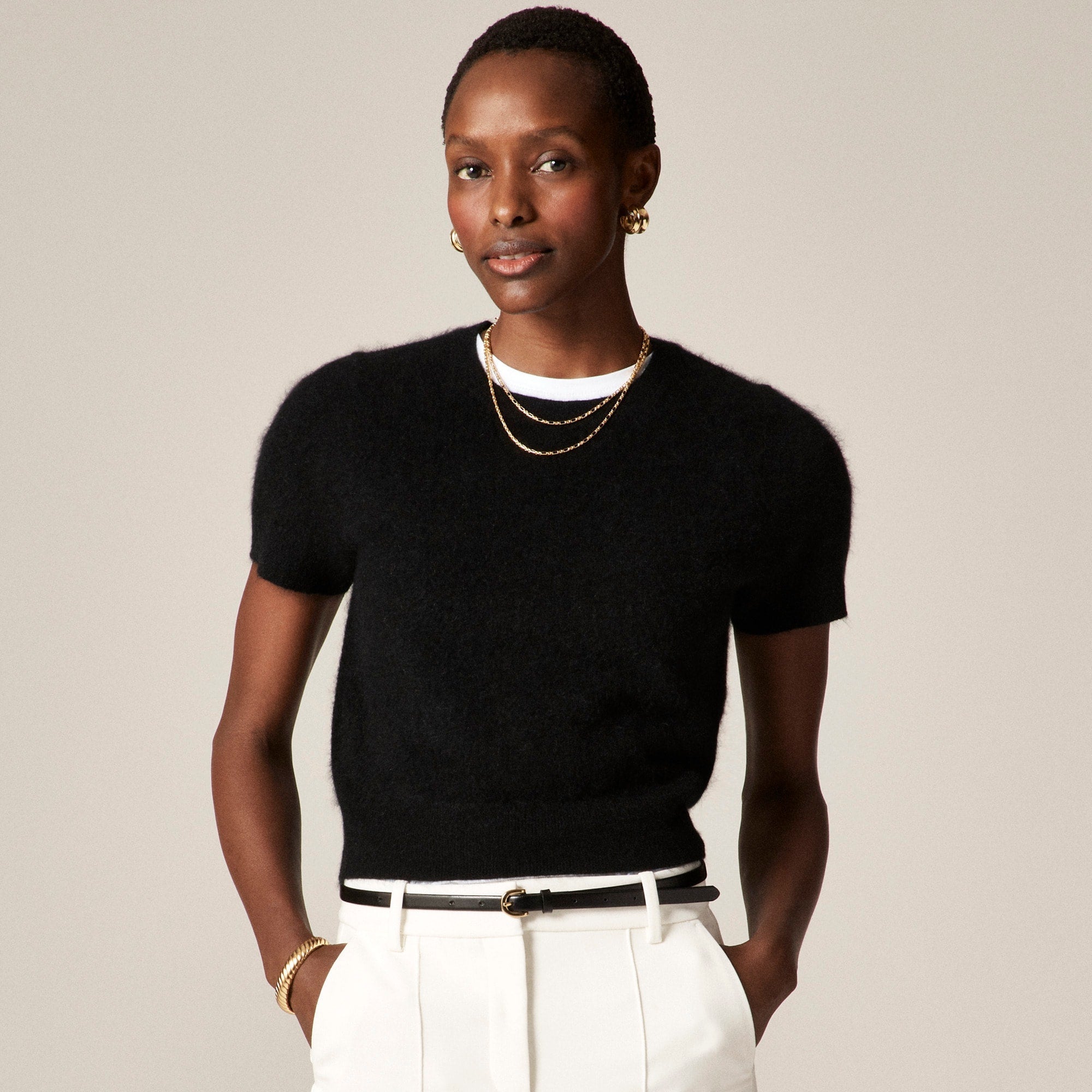 You've never seen cashmere like this.Our design team spent months developing our luxe brushed cashmere. It's crafted with longer fibers that are specially washed for an extra-fuzzy texture that's unlike anything you've felt before. Plus, this version is lighter weight and breathable, so it's ideal for in-between seasons dressing. This take on the classic tee comes with a slightly shorter length that hits right above the hips, a roomier fit and rib trim at the collar, cuffs and hem. Our design team doesn't pick favorites, but if they did. . .well, this would be it.
