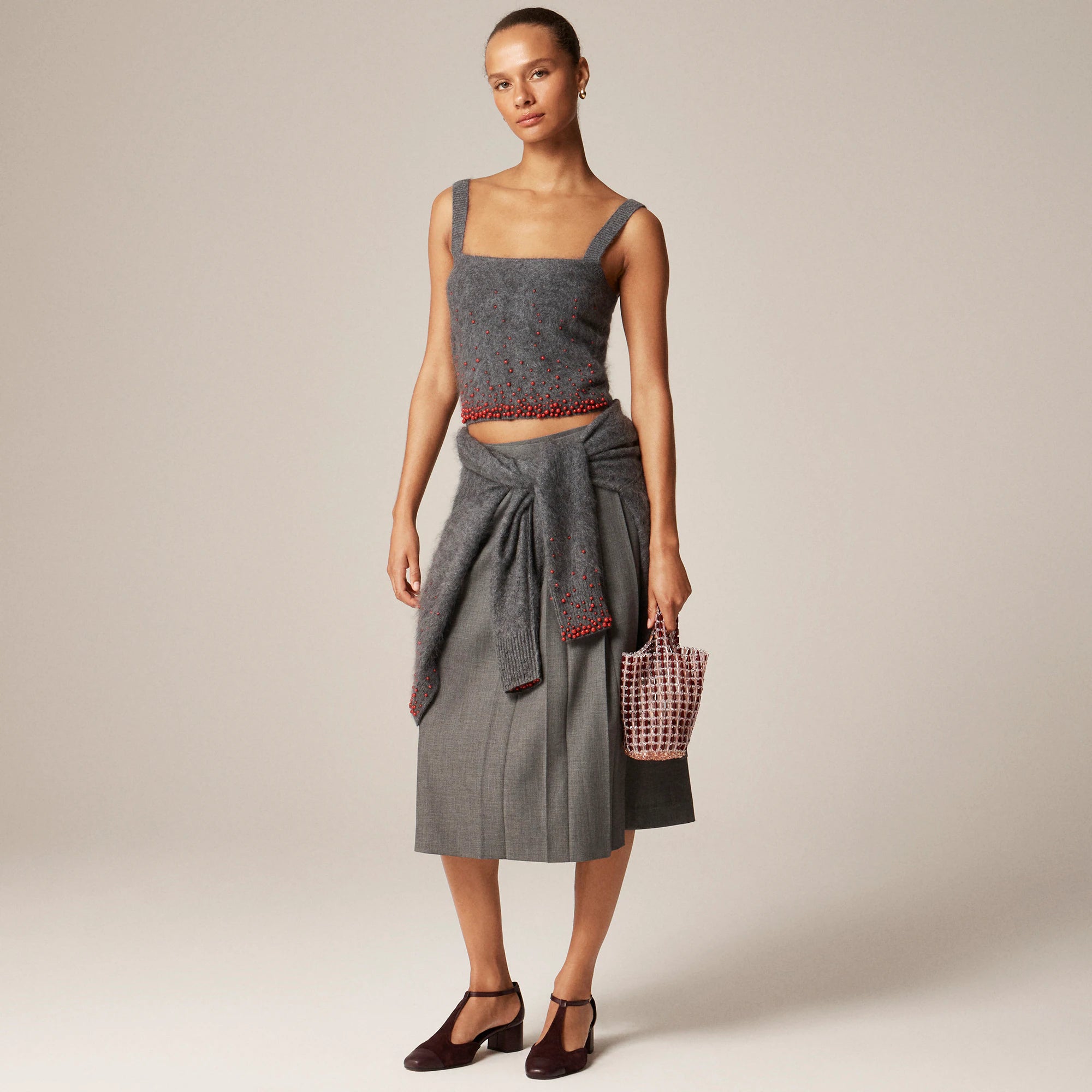You've never seen cashmere like this. Our design team spent months developing our luxe brushed cashmere. It's crafted with longer fibers that are specially washed for an extra-fuzzy texture that's unlike anything you've felt before. This style comes with beaded details along the hem for all the visual interest and pairs perfectly with the matching skirt and cardigan for an impossibly soft set.