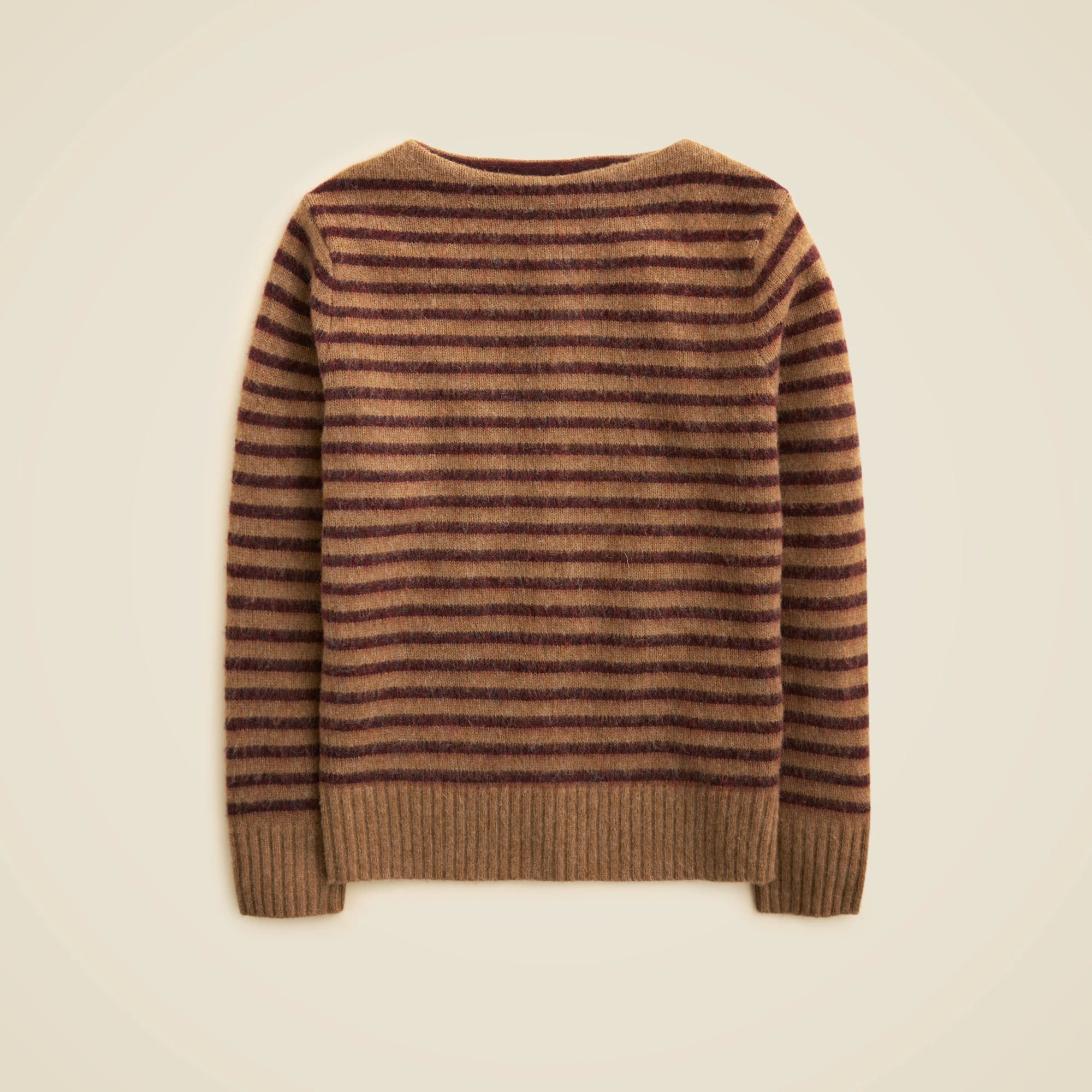 A new silhouette inspired by nautical classics. This 100 percent wool style is brushed for softness and the textured, "hairy" appearance it's known for. Based off traditional sailor uniforms, this boatneck silhouette gained popularity in the 1930s and has since become a closet staple. Whether you wear it with chinos, denim or a suit, it's always the right choice.