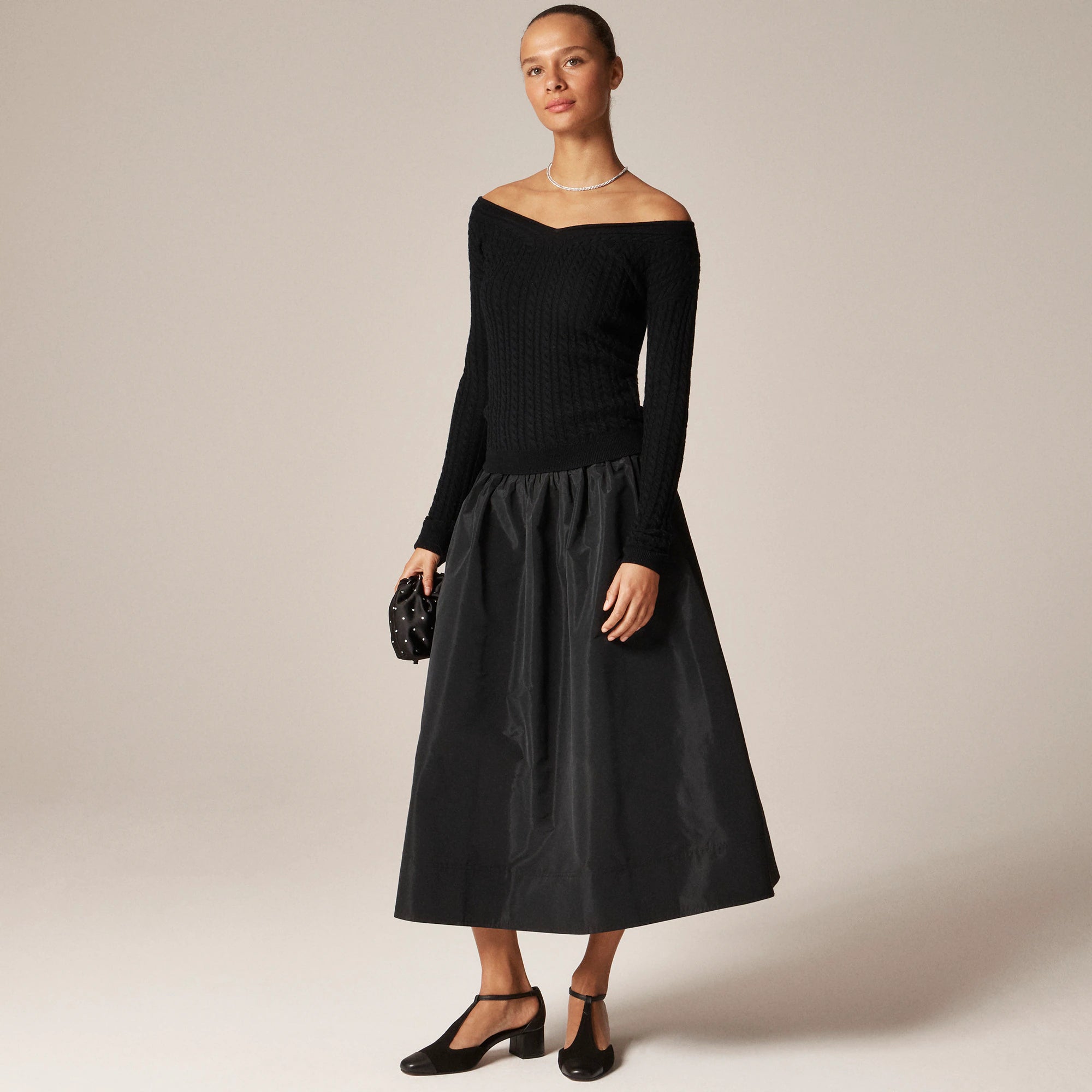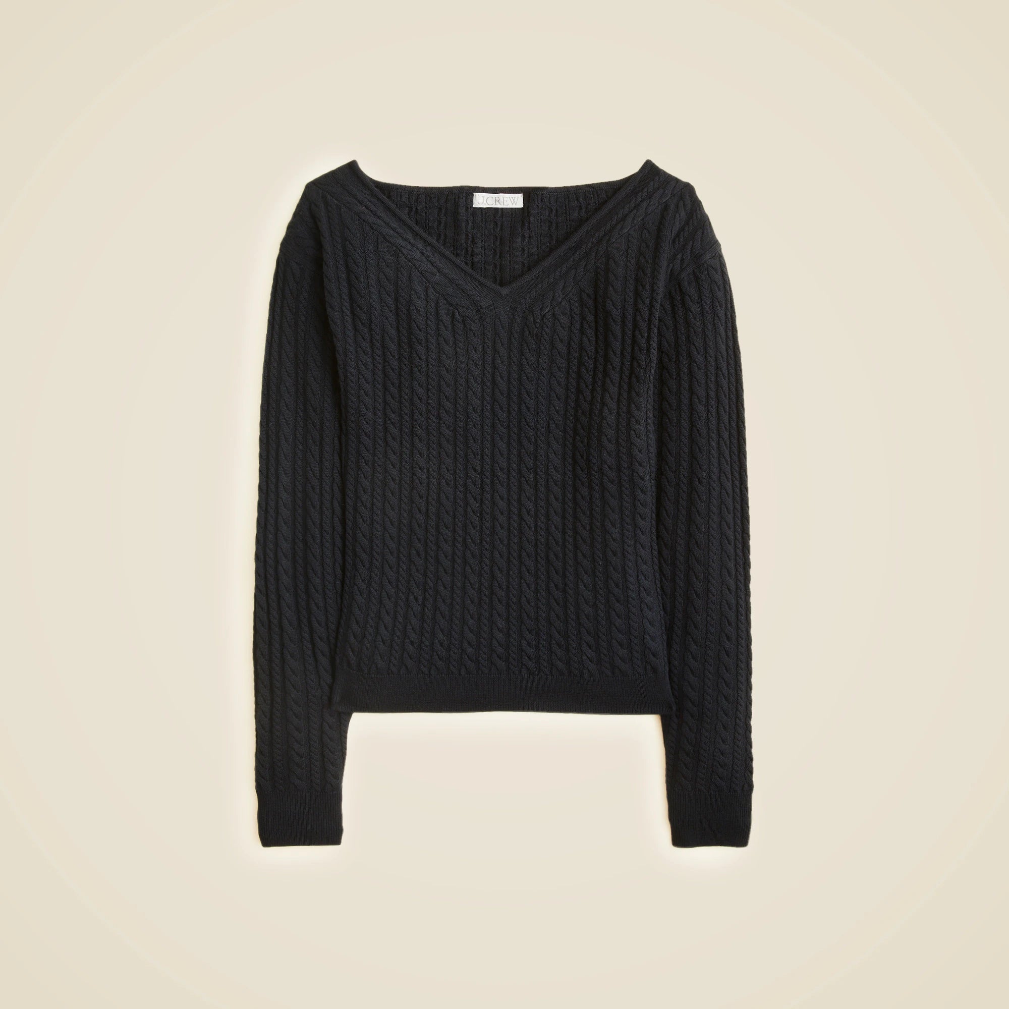 Cable-knit wide V-neck sweater in merino wool