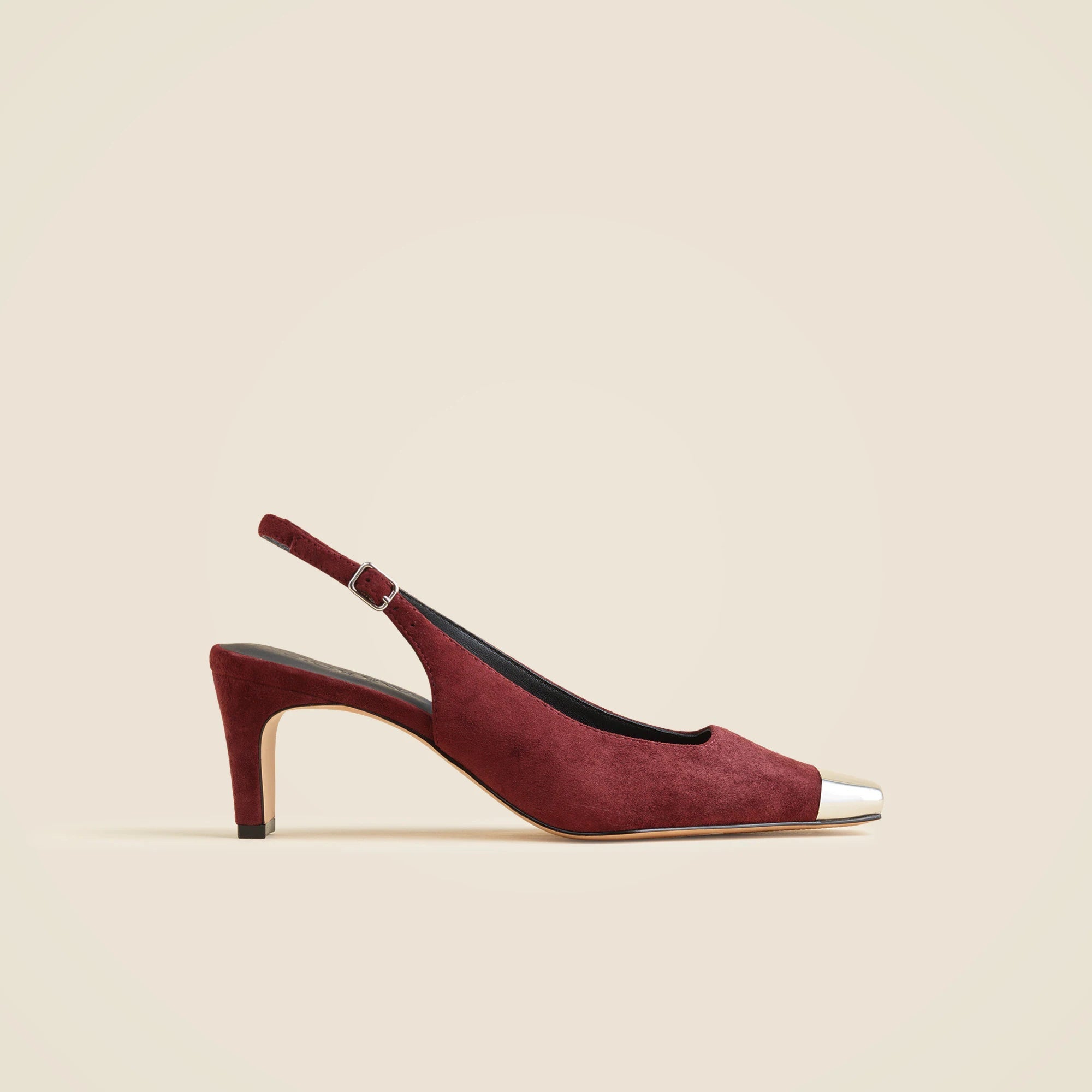 The ultimate desk-to-dinner-date heels. We made this polished slingback silhouette feel more distinctive with metallic cap toe accents, rich suede fabric and a just-right heel height.