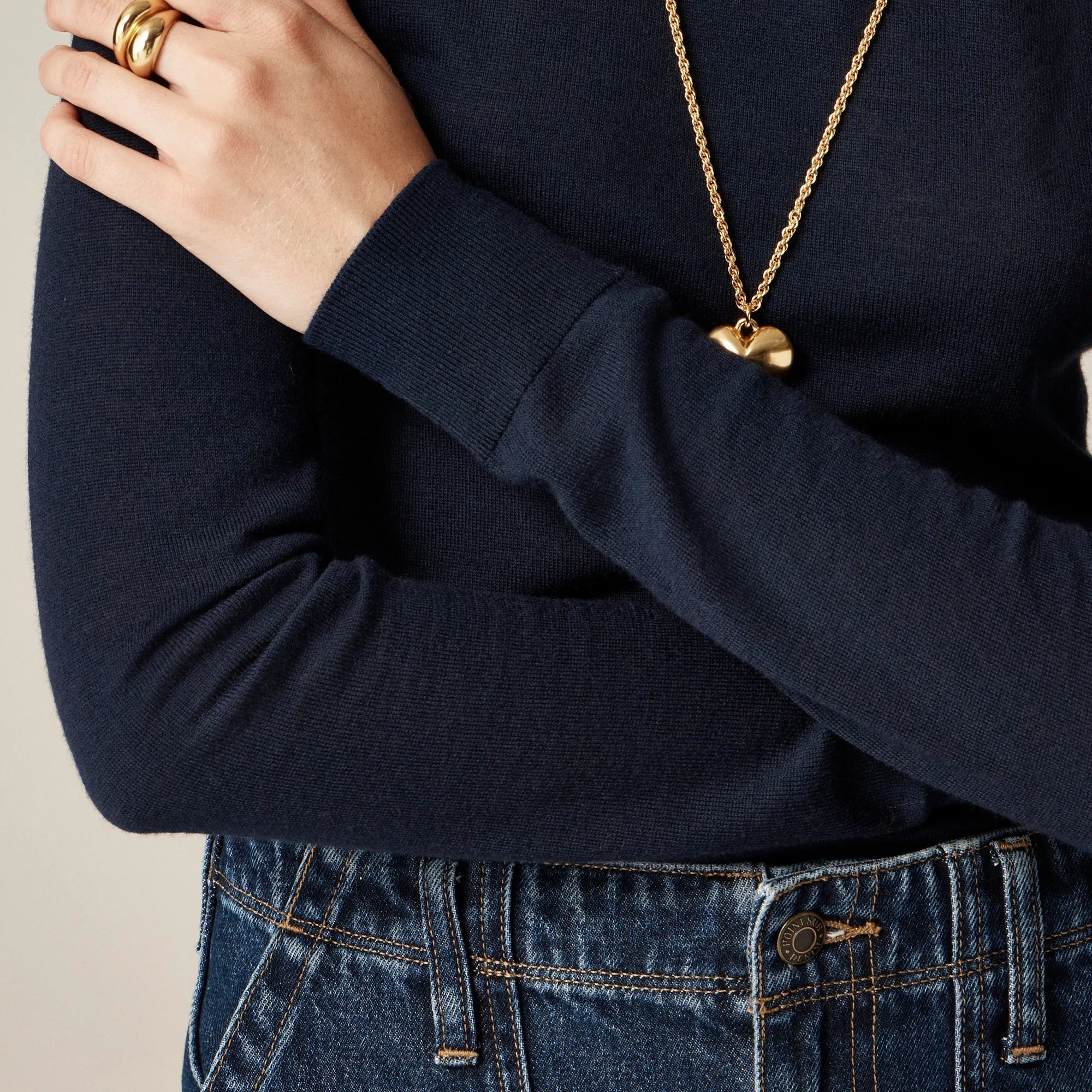 A minimalist '90s-inspired layering piece. . . The fit of your favorite tee meets the feel of your favorite sweater. This easy layer sits closer to the body and is incredibly soft to the touch. It's crafted from smooth merino wool with a touch of stretch at the cuffs, so it's warm enough to wear on its own now and light enough to layer later.
