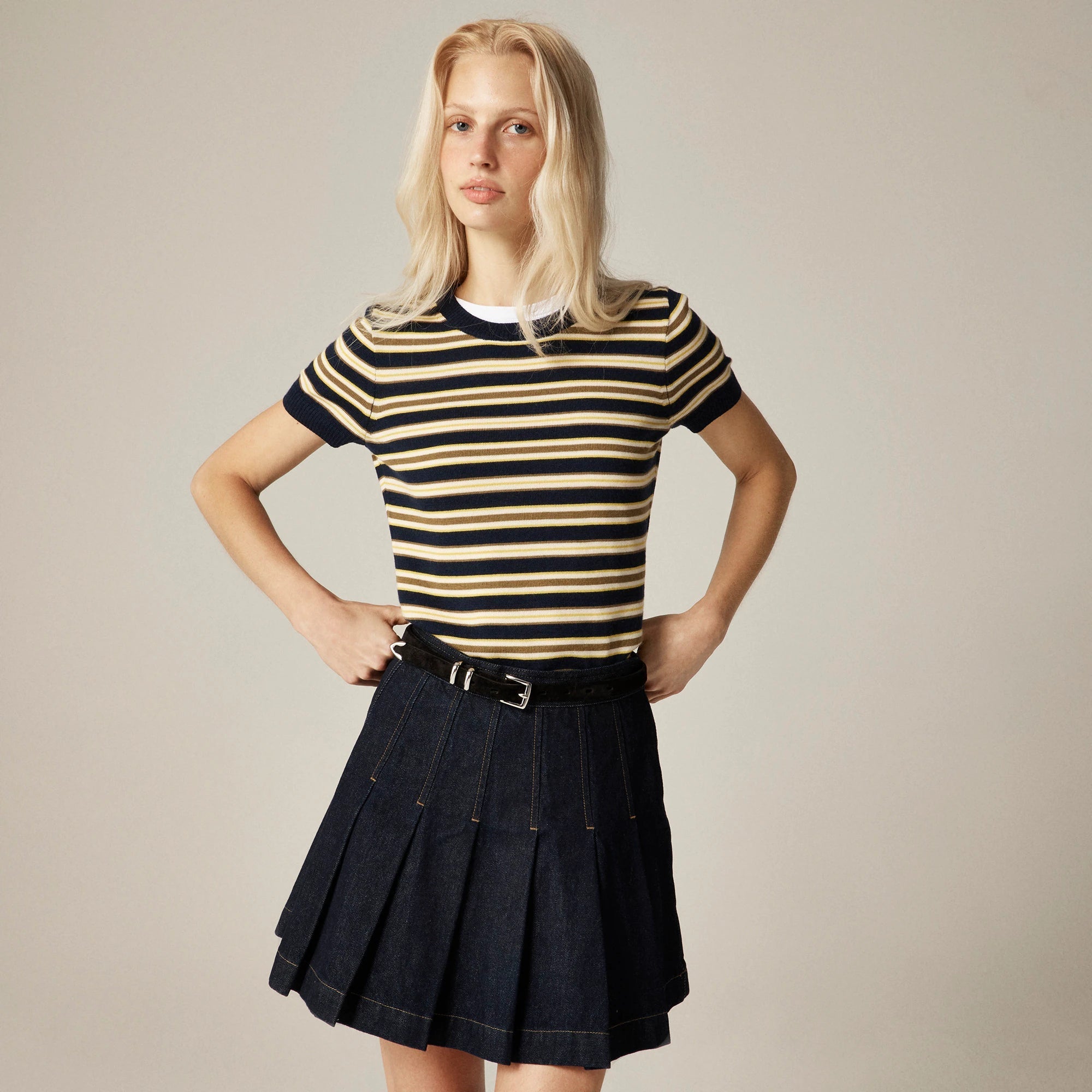 Our '90s-inspired layering piece, redesigned for hot days. . .The fit of your favorite tee meets the feel of your favorite sweater. This easy layer sits closer to the body and is incredibly soft to the touch. It comes with ribbed trim details at the collar and sleeves for added texture. Plus, it's crafted from smooth merino wool with a touch of stretch at the cuffs, so it's warm enough to wear on its own now and light enough to layer later.