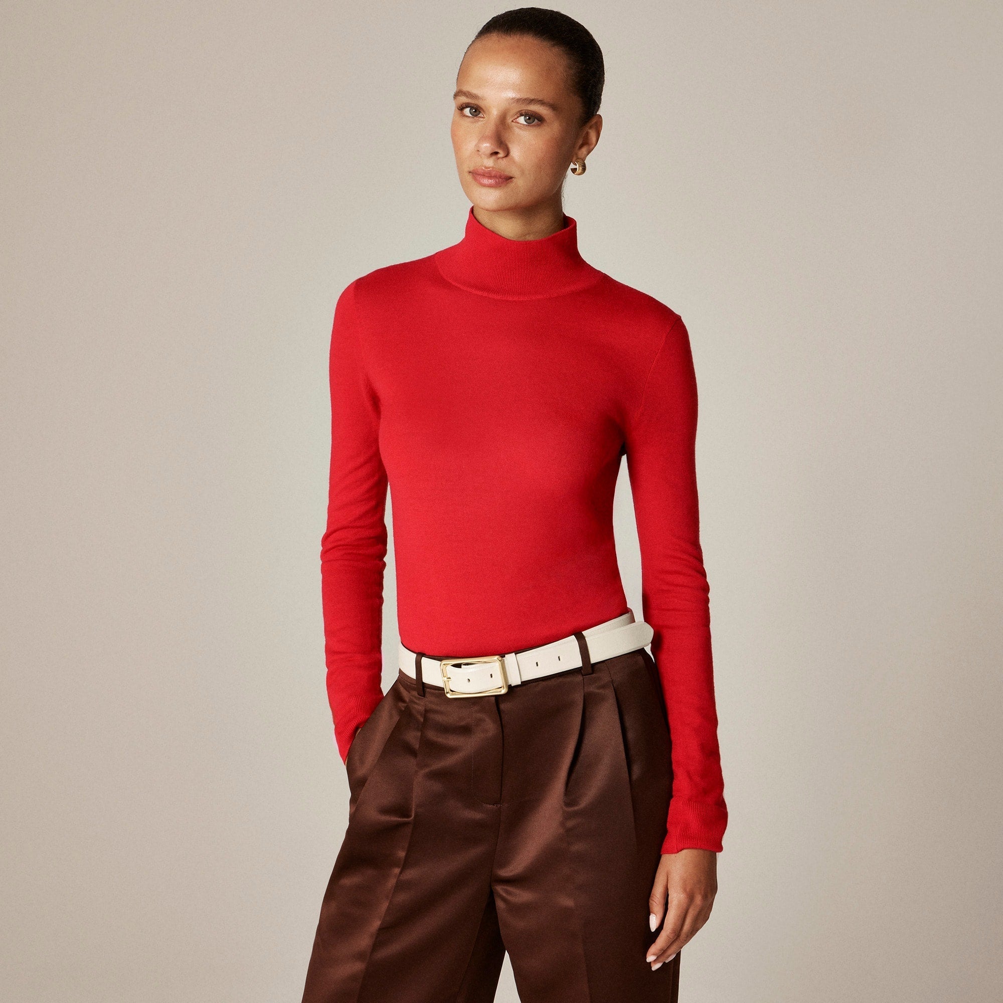 A minimalist '90s-inspired layering piece. . .The fit of your favorite tee meets the feel of your favorite sweater. This sleek layer sits closer to the body, comes with a thinner turtleneck detail that doesn't need to be folded down and is incredibly soft to the touch. It's crafted from smooth merino wool with a touch of stretch at the cuffs, so it's warm enough to wear on its own now and light enough to layer later.