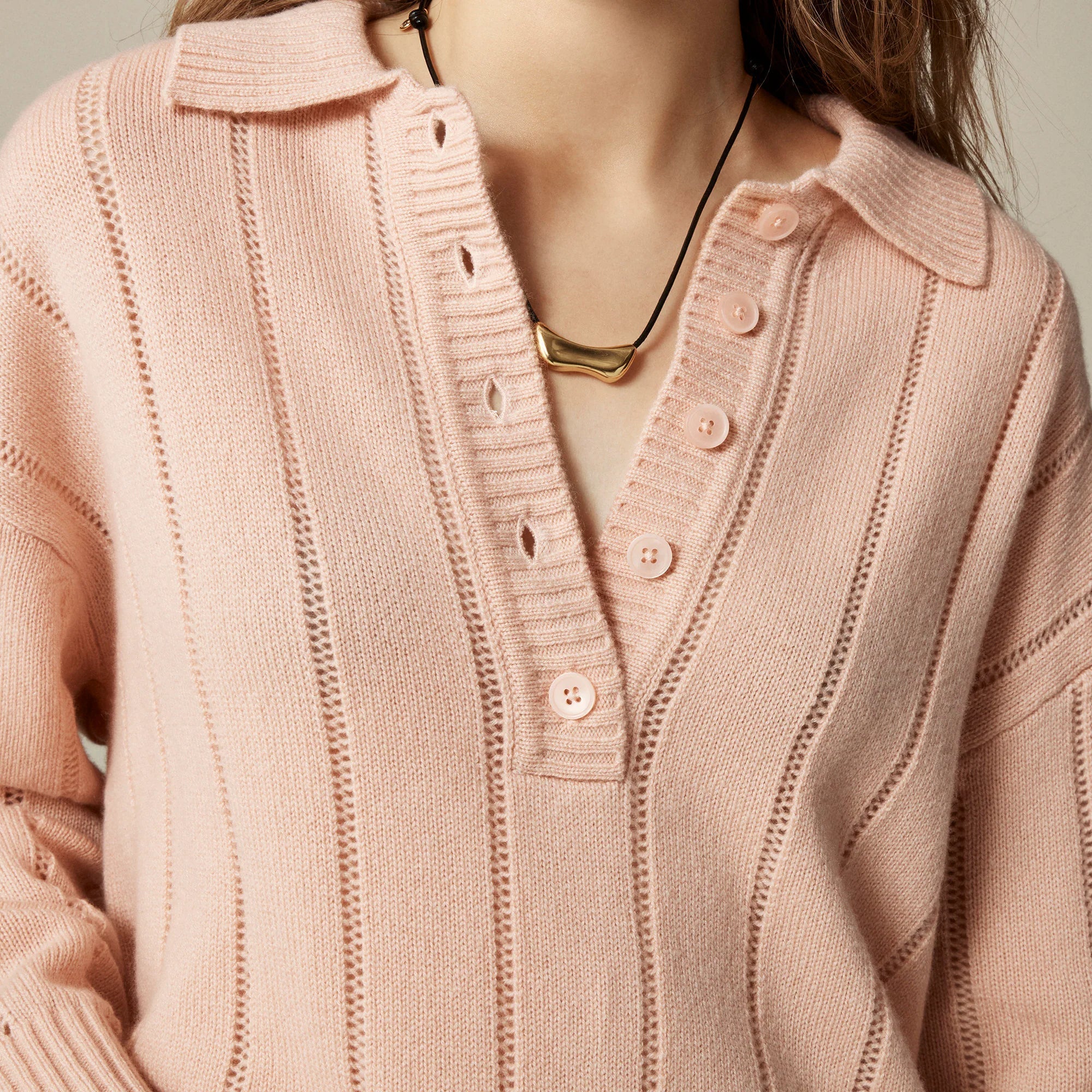 When it comes to quality, no one does cashmere quite like we do. This luxe update to a classic silhouette comes with intricate pointelle detailing that adds a quiet hint of texture, a prep-inspired collar and a few buttons down the front that you can wear undone to show off your base layer.