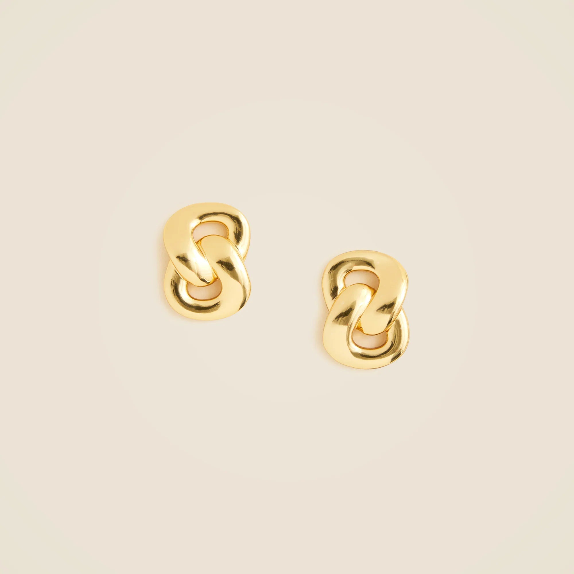 Your outfit's missing link. These interlocking stud earrings add extra polish to office days and date nights alike. Feel-good fact: This style was made using eco-friendly recycled-brass casting. P.S. Want to keep your jewelry looking like new? We recommend removing it before showering or exercise and putting it on after applying hair products or perfume. To clean your pieces, polish them with a soft, dry cloth—and when not wearing, store them in a pouch or jewelry case.
