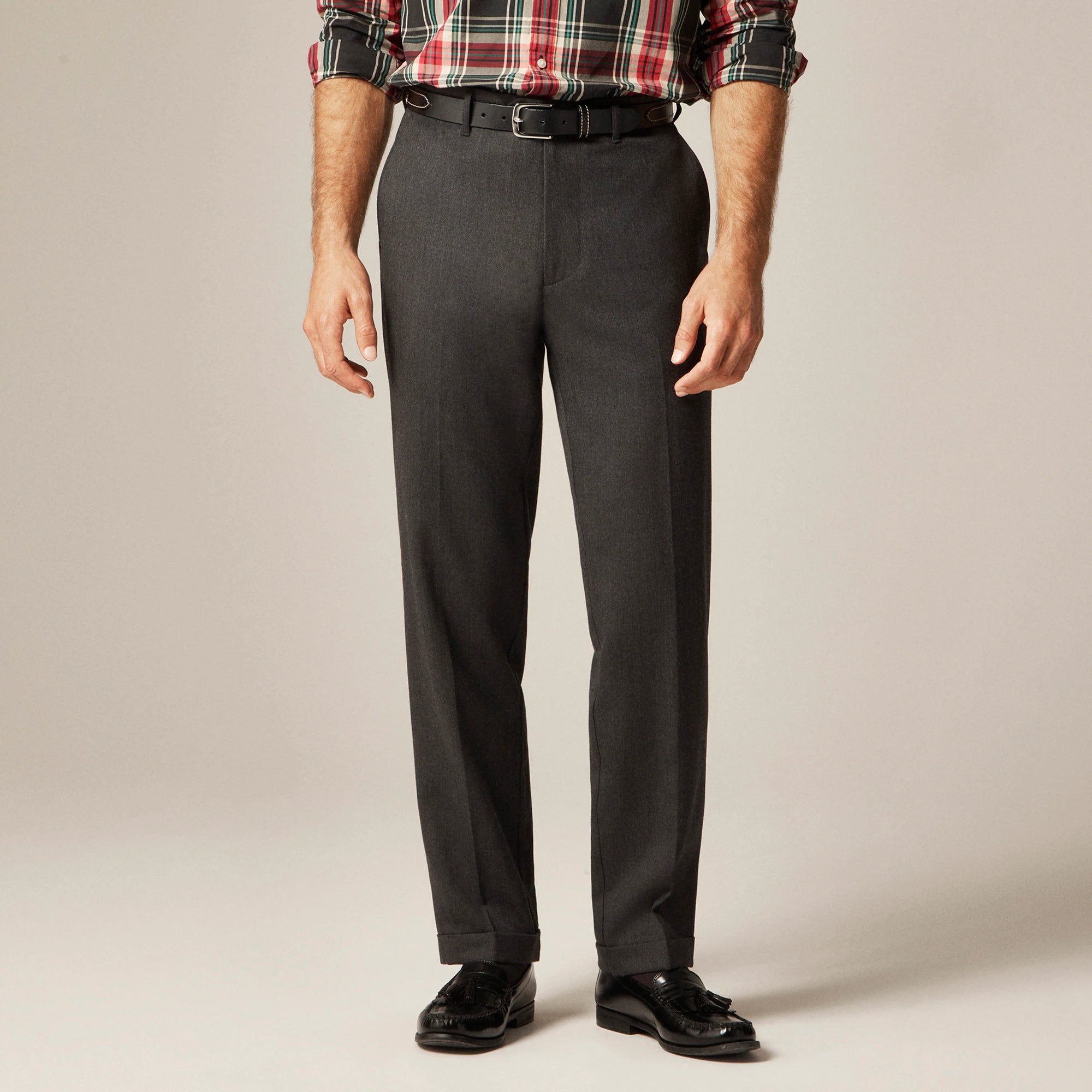 When you want to look polished without wearing a full suit, these classic trousers are the perfect everyday answer. We cut these pants with a classic fit and a higher rise in 100 percent wool fabric. These trousers include details like an extended tab-front closure, hard-pressed creases and affixed cuffs, elements often found in mid-twentieth-century styles. With half-lined legs, they're designed for all-day comfort and an easy, elevated look.