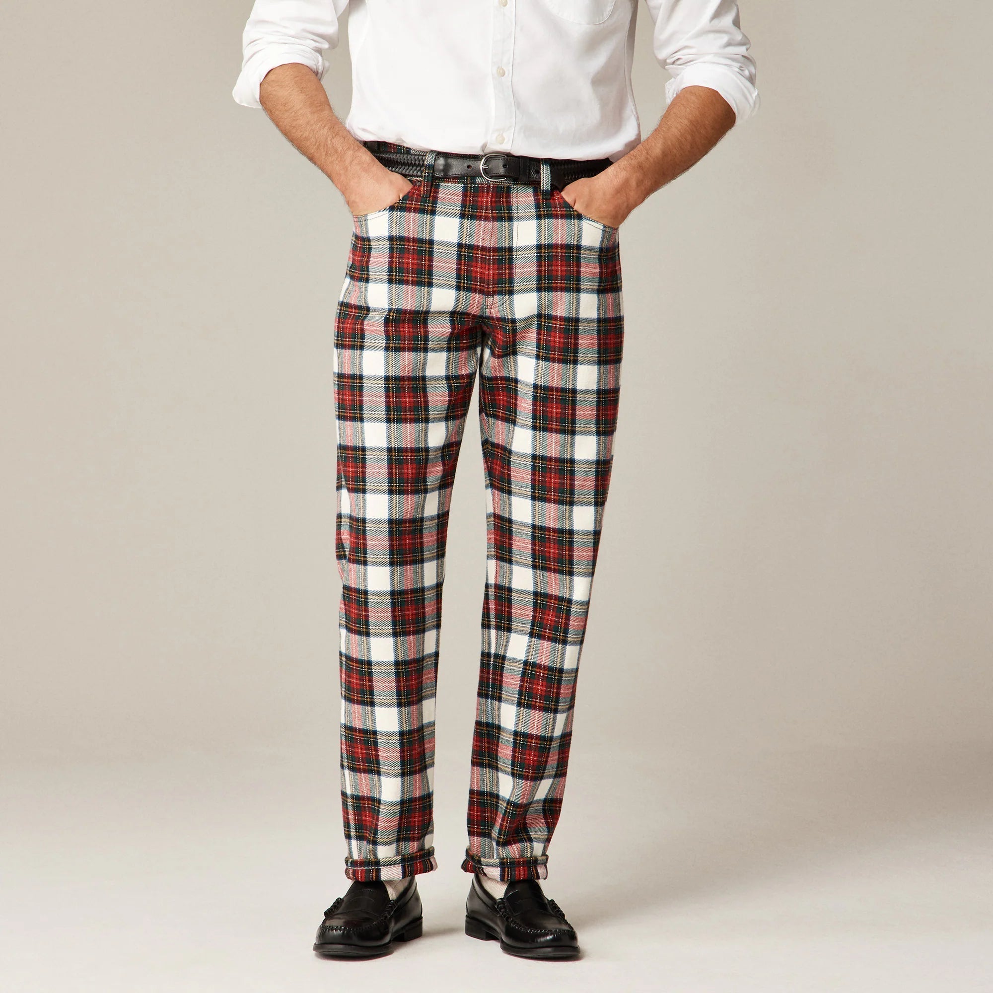 A holiday take on your favorite five-pocket pants. We cut these plaid pants in 100 percent cotton twill that will break in with every wear. Cut straight through the hip and thigh with a true straight leg, they're perfect for all your holiday plans. Plus, they're cast in a tartan pattern that feels festive and timeless all at once.