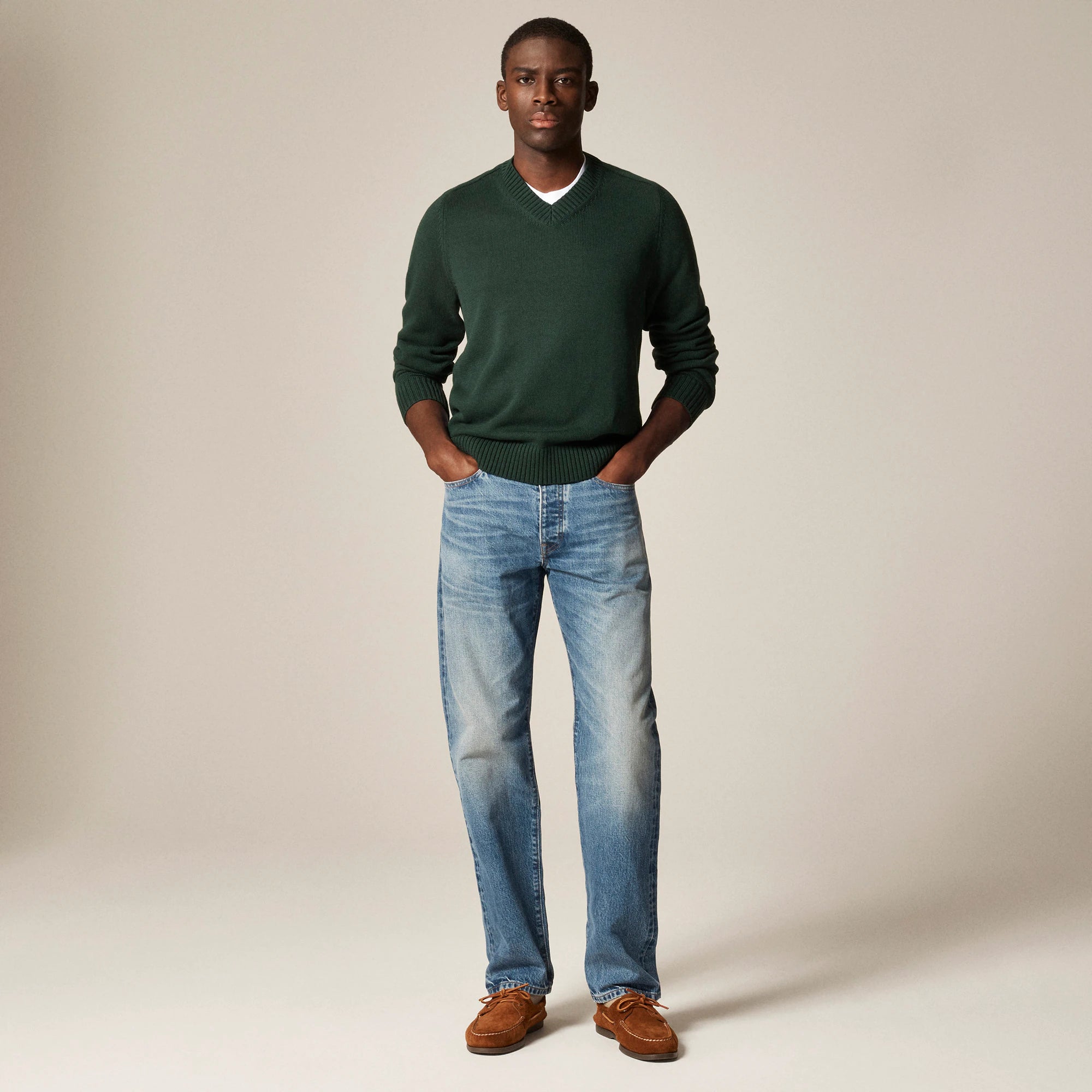 Our designers are obsessed with denim—and it shows. We source denim from some of the world's most renowned mills, create exclusive washes and build our jeans to feel good from the moment you put them on. This 100 percent cotton selvedge denim comes from the Kaihara mill in Japan, one of the largest and best-known denim makers in the world. In more than 50 years of production, Kaihara has patented machines to improve the weaving process and developed new techniques that blend American and Japanese dyeing traditions. "Selvedge" refers to the self-finished edge of a piece of fabric, a tightly woven band that keeps the hem from unraveling and fraying. Flip the cuffs to see the selvedge line, a sign of denim that's built to last.