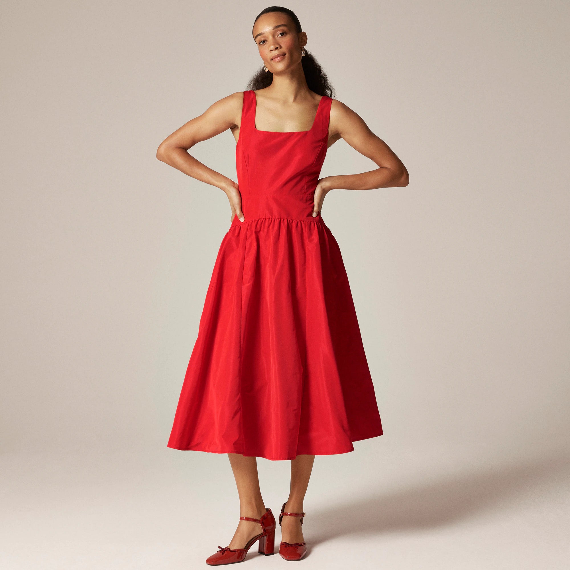 New in J.Crew Collection. A holiday showstopper crafted in crisp taffeta, with a perfectly tailored square neckline and a full A-line skirt that adds volume and movement.