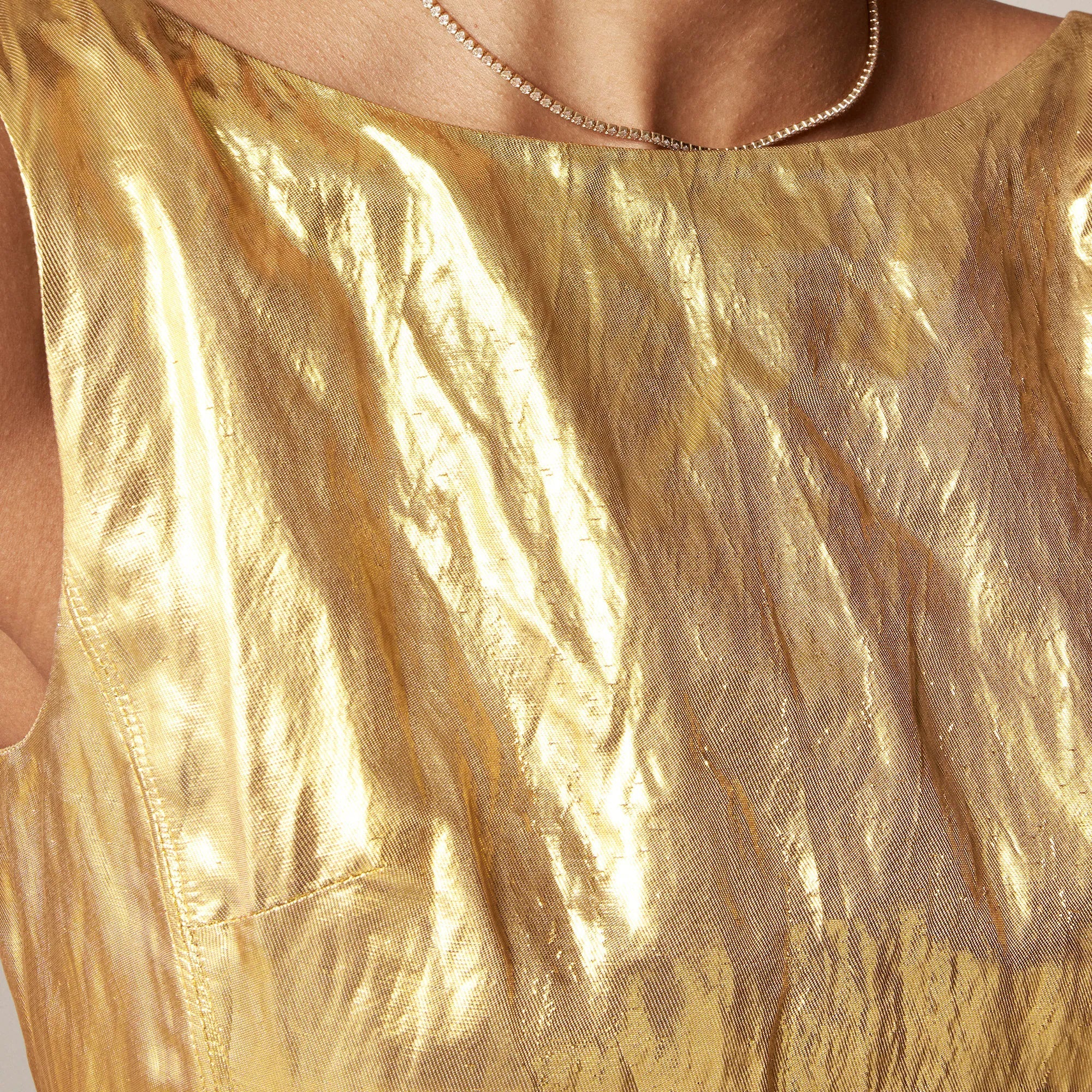 New in J.Crew Collection. Light-reflecting and form-fitting, this dress comes with a few dance floor–friendly details like a scoopback that shows a hint of skin, plus textured lamé fabric with flecks of metallic thread throughout. Another reason to love it? The matching lady jacket.