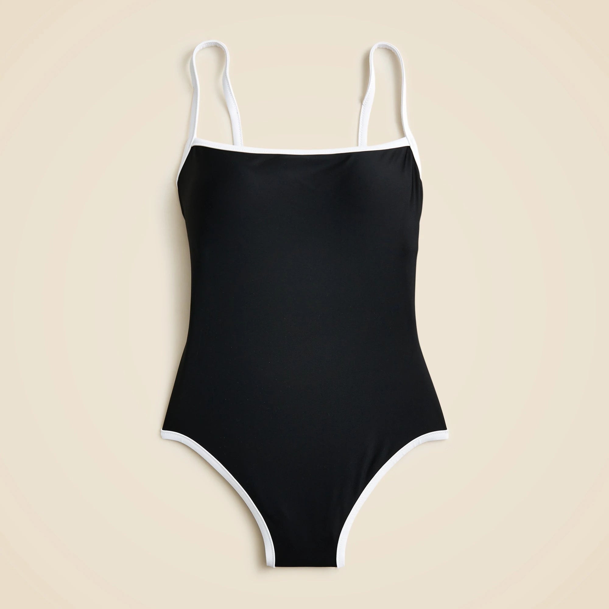 A throwback style with standout details. This classic one-piece has a straight-across neckline and comes with cool contrast trims that pop.