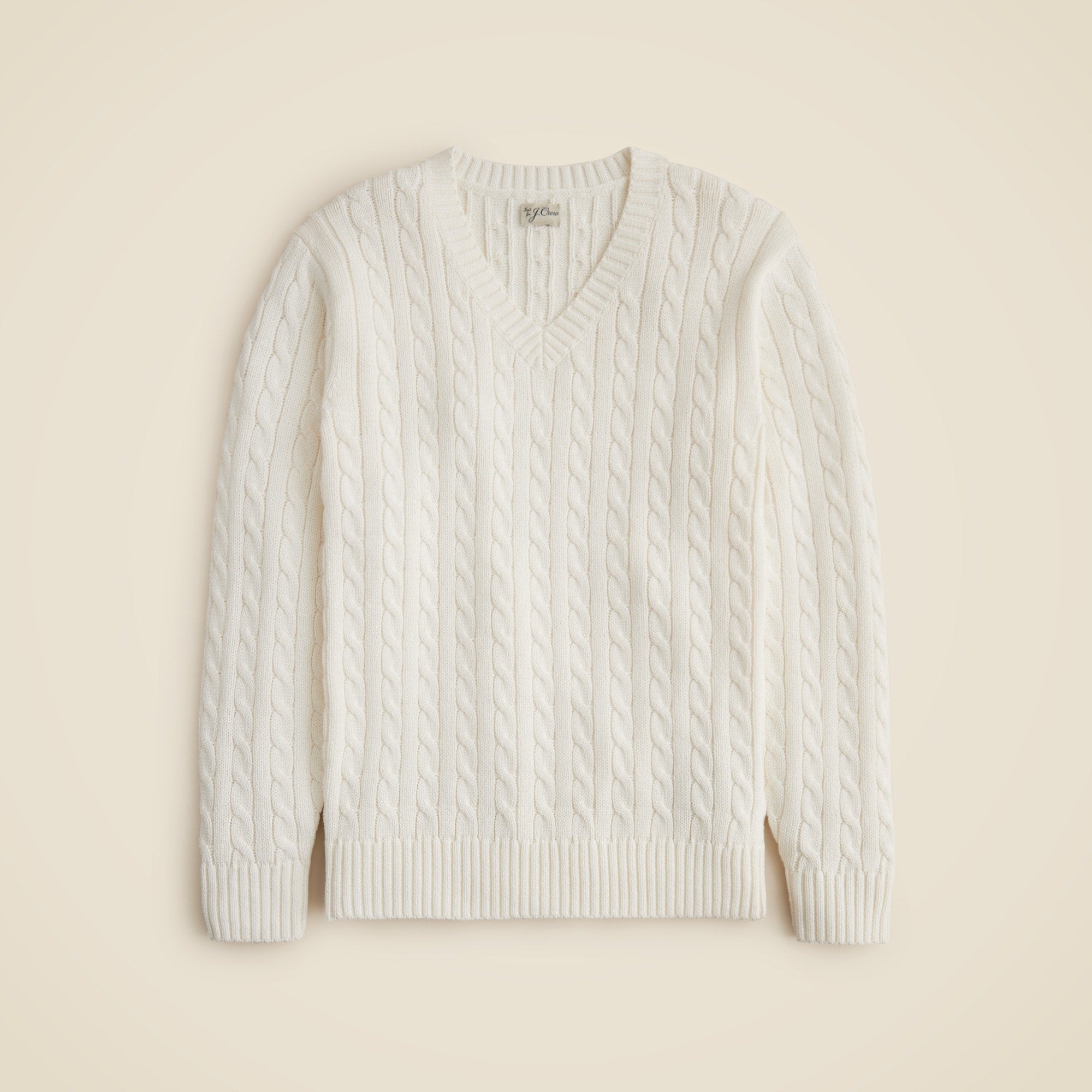 Our latest take on a timeless silhouette. We took the classic cable-knit sweater and gave it a fall-forward update with chunkier, heavier-weight yarns and a perfectly relaxed fit. Plus, it comes in a familiar V-neck fit that's ideal for wearing on its own now and layering later.