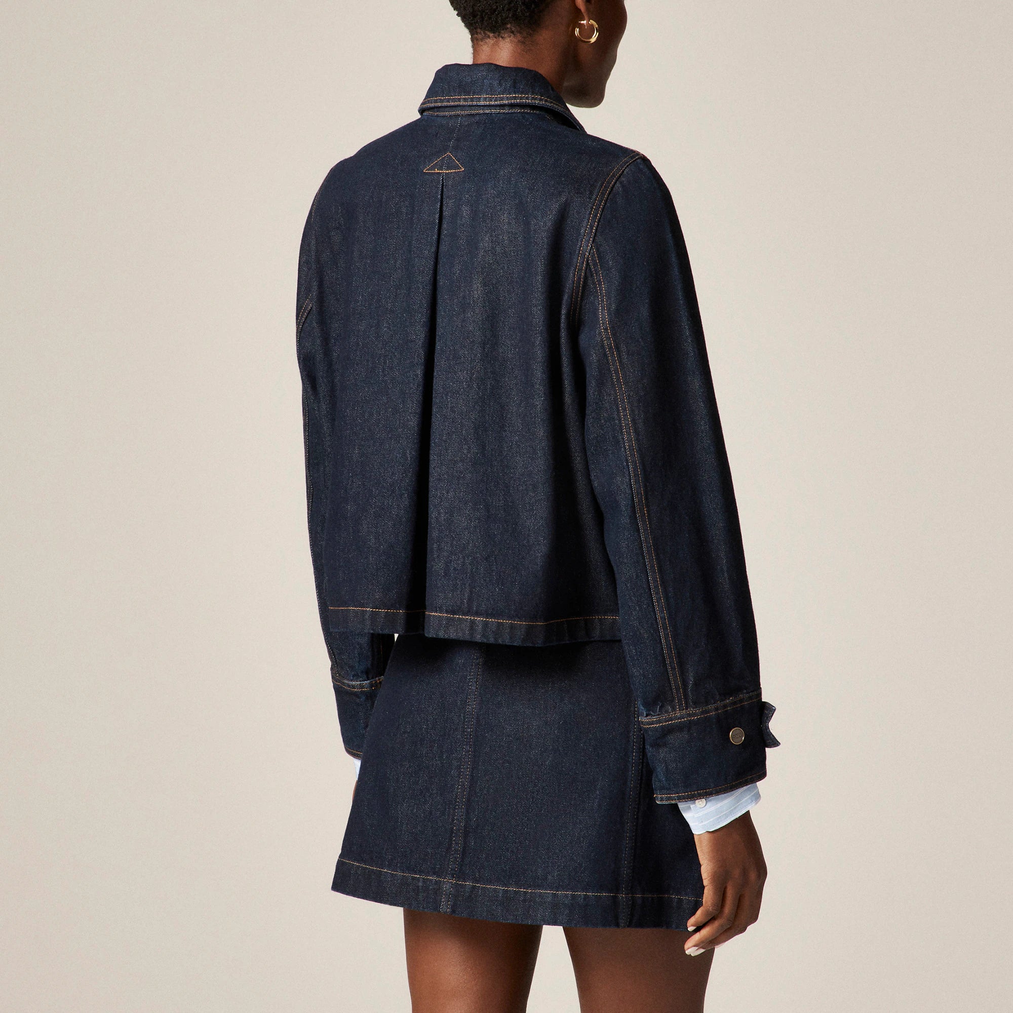 A J.Crew icon since 1983. . .Always evolving, this is the latest take on our signature Barn Jacket, a style that looks sleek and polished no matter what you're wearing underneath. A couple of can't-miss details: the cropped fit, denim fabric and patch pockets.