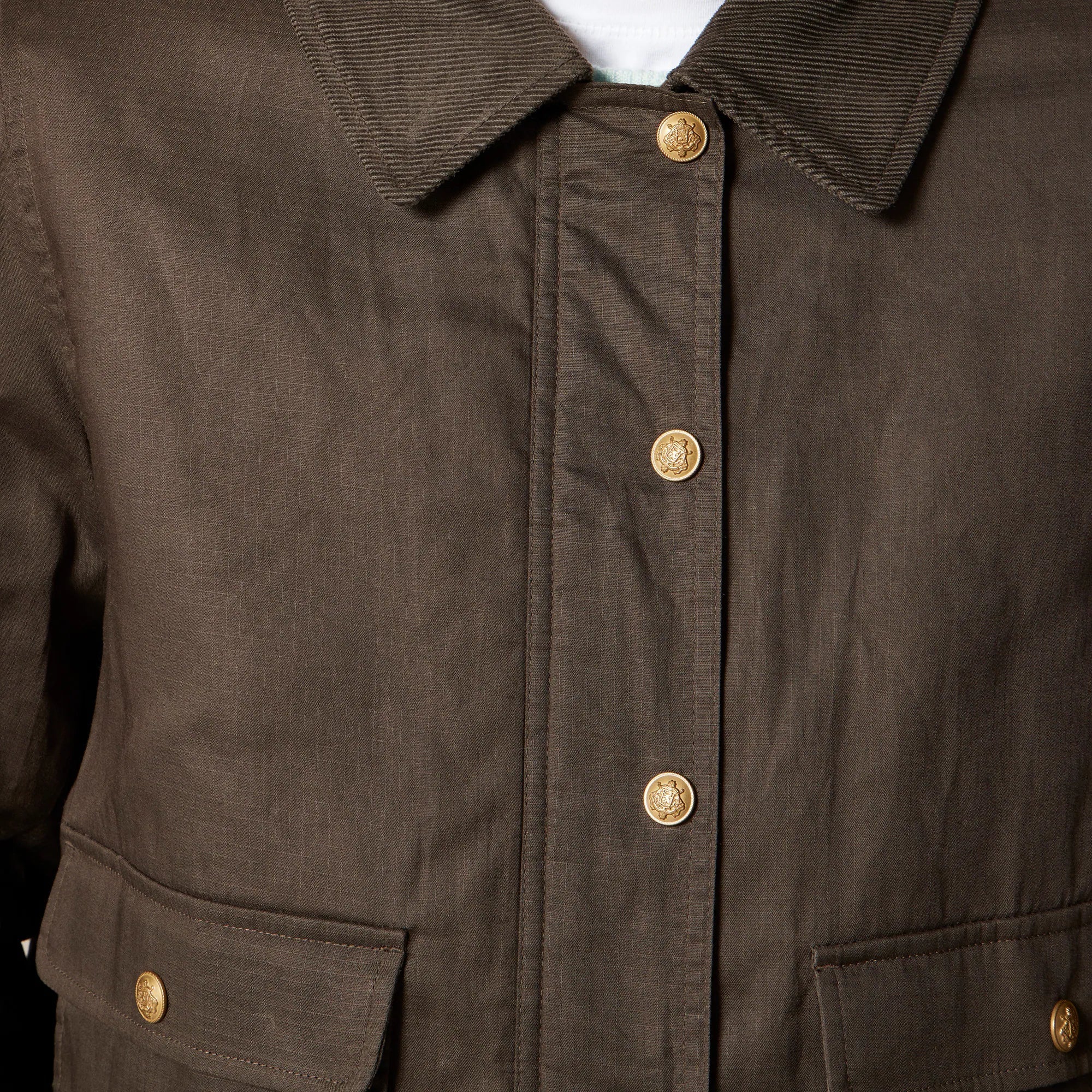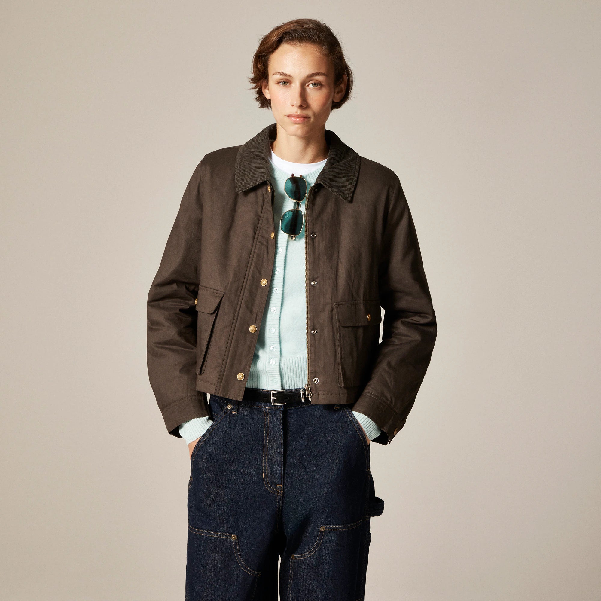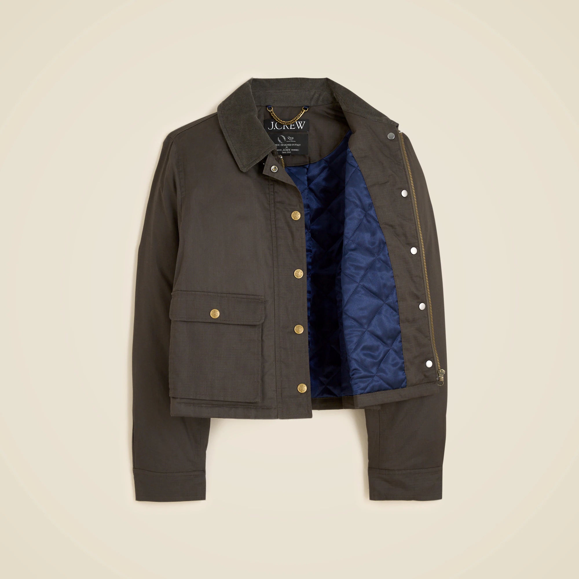 A J.Crew icon since 1983. . .Always evolving, this is the latest take on our signature Barn Jacket, a style that looks sleek and polished no matter what you're wearing underneath. A couple of can't-miss details: the cropped fit, back pleat for swingier movement and classic corduroy collar. Plus, this piece is filled with PrimaLoft, a down alternative that keeps you warm and keeps plastic bottles out of oceans and landfills.