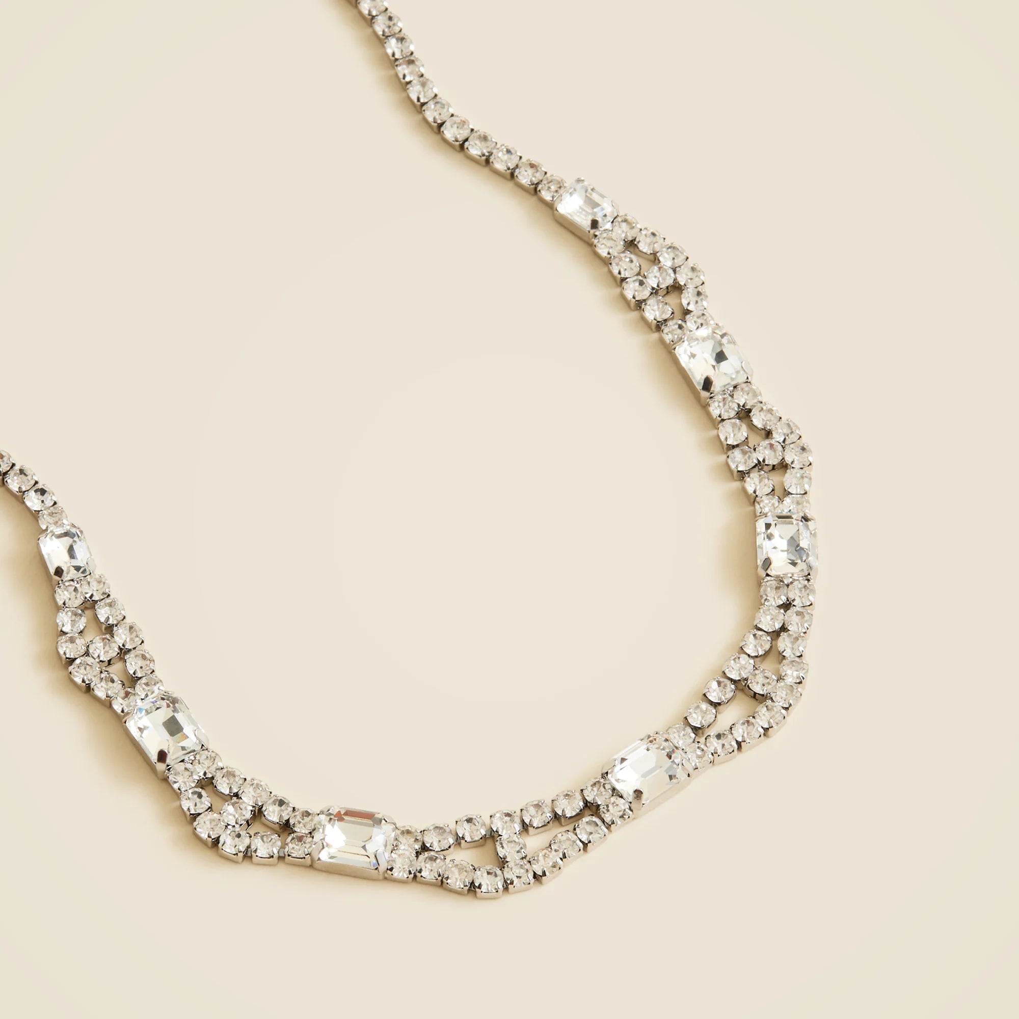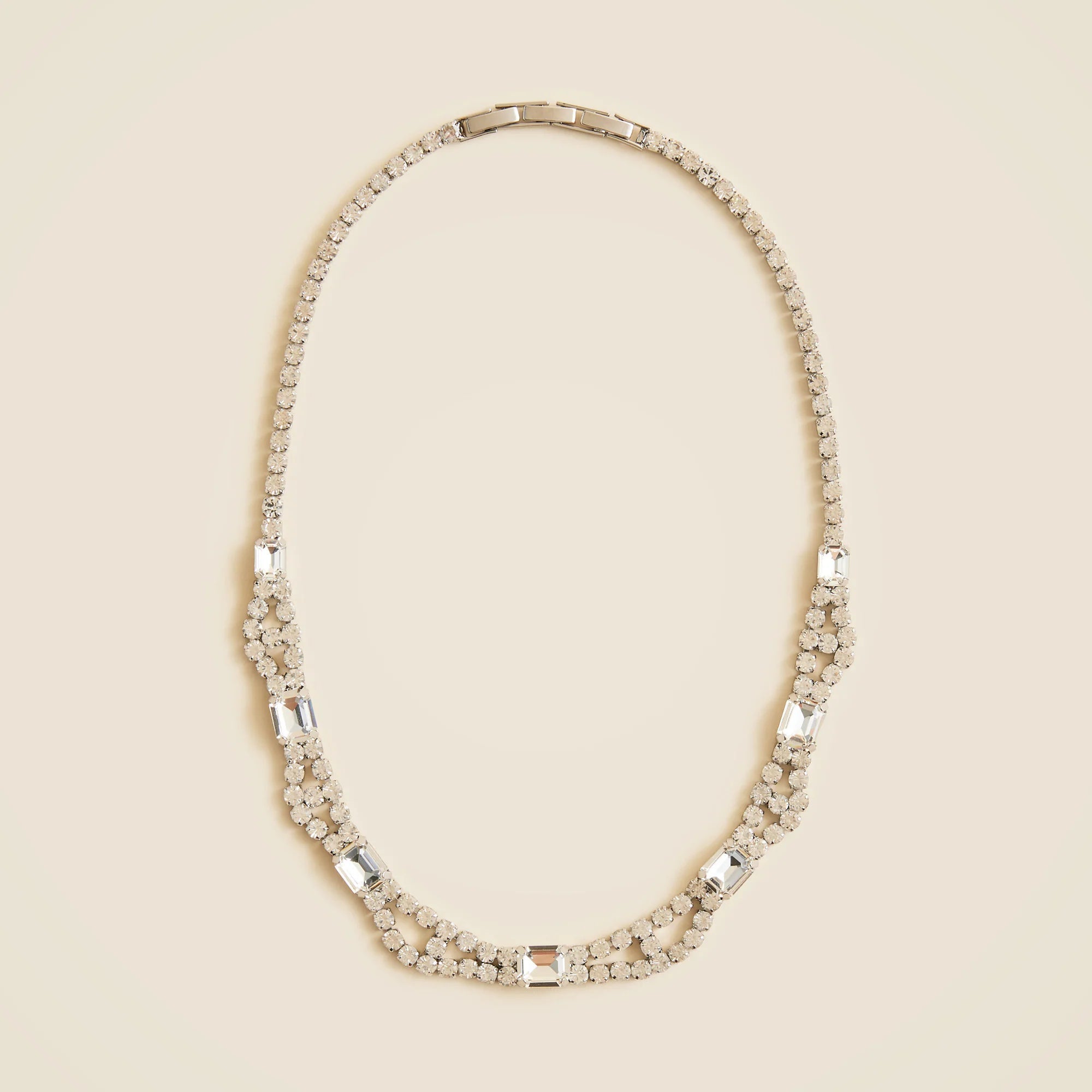 A wearable work of art. This gemstone necklace features an art deco–inspired design and glass crystals for the perfect amount of sparkle. Feel-good fact: This style was made using eco-friendly recycled-brass casting. Want to keep your jewelry looking like new? We recommend removing it before showering or exercise and putting it on after applying hair products or perfume. To clean your pieces, polish them with a soft, dry cloth—and when not wearing, store them in a pouch or jewelry case.