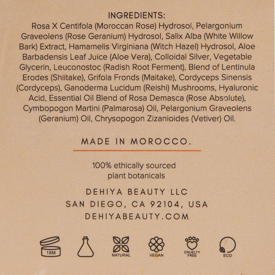 DEHIYA BEAUTY is a plant-based, vegan and sustainable beauty line creating minimal, multiuse products. Safi face mist is a nutrient-rich blend of floral distillates and botanical extracts that boost hydration, restore pH balance and provide phytonutrients to skin. Hydrating mist is perfect for dry and mature skin types. Shake well. Mist face daily after cleansing and before applying treatments to hydrate, lock in moisture and boost treatments.