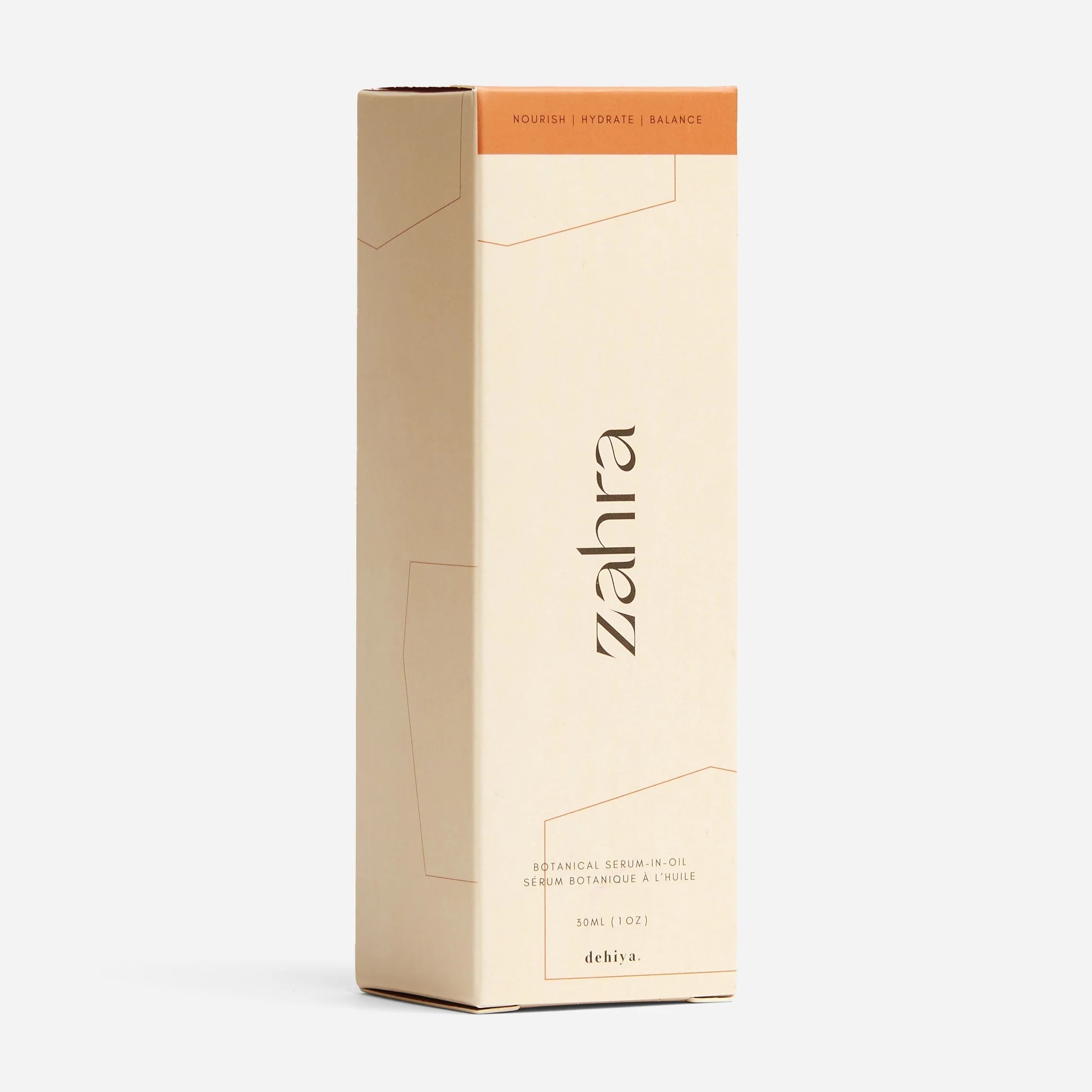 DEHIYA BEAUTY is a plant-based, vegan and sustainable beauty line creating minimal, multiuse products. Zahra is a lightweight, nourishing face oil comprised of wild-crafted foundational oils and 12 different highly active plant botanicals. Good for all skin types and free from essential oils. Shake well. Rub two to three pumps between palms using your fingers and palms and apply to damp skin in sweeping, upward strokes. Use more generously in problem or dehydrated areas.