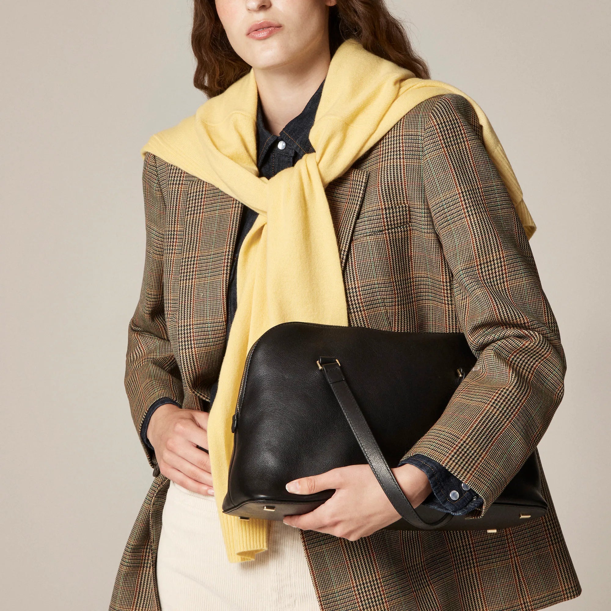 A classic style from the J.Crew archives, with a modern twist. We brought back this polished '90s bowler bag and gave it even more character with a custom double-zipper closure and feet along the bottom to protect against the elements. But our favorite innovation has to be the contrast suede lining, which we bonded to the outside for a slouchy-yet-structured finish. Everyday, elevated—indeed.