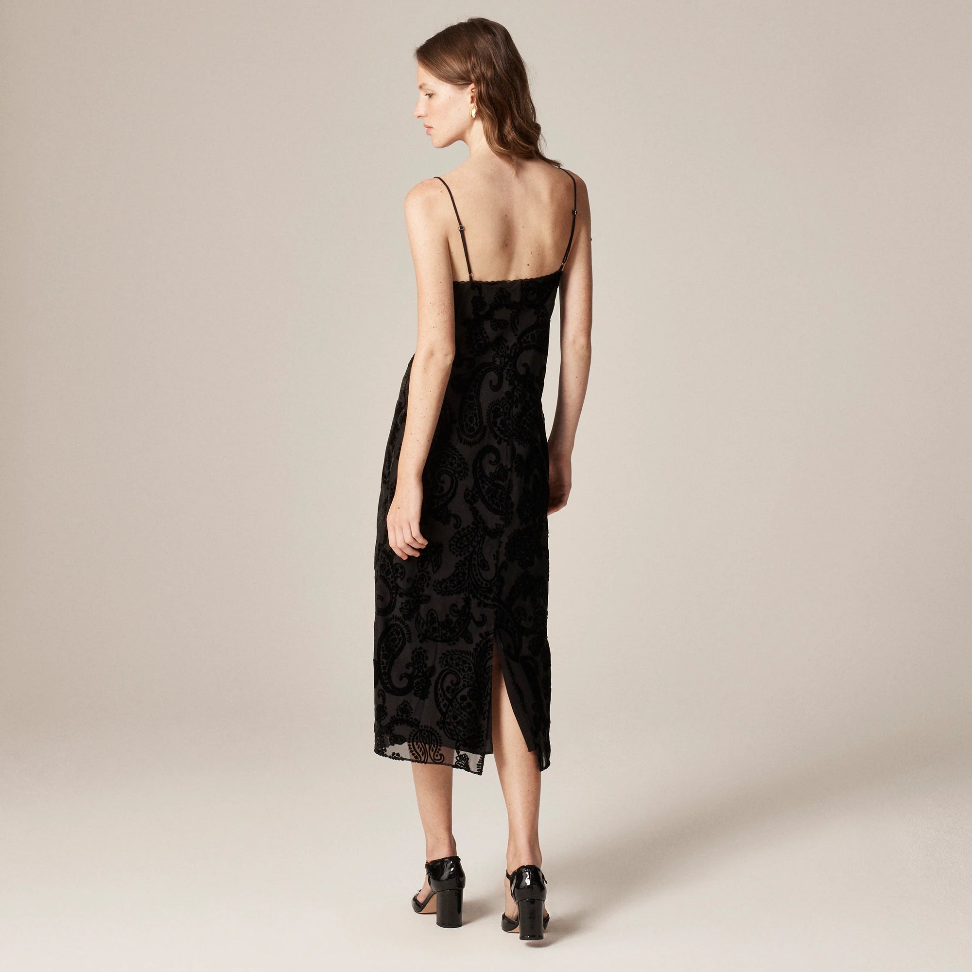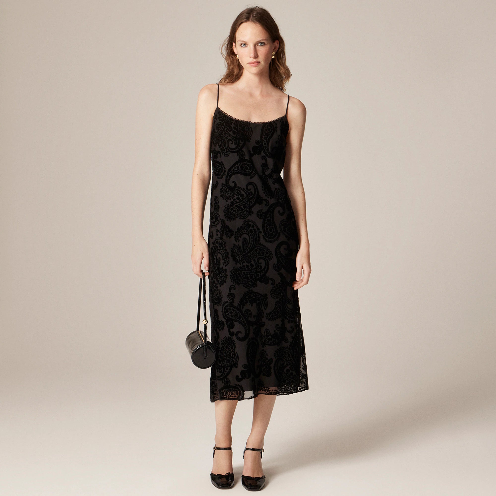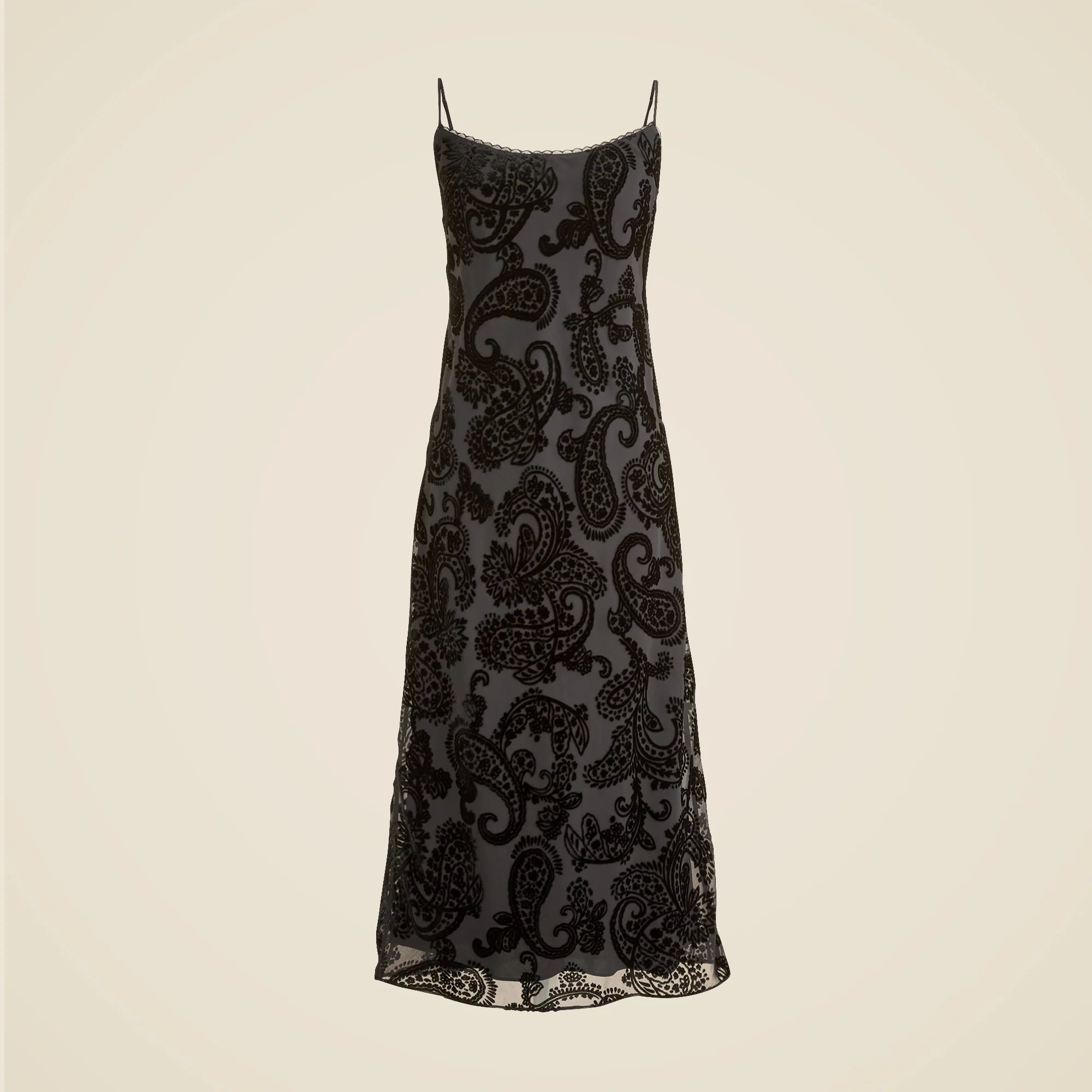 A '90s-inspired slip with statement texture. This special style has a sheer overlay crafted in devoré, a velvet burnout technique that creates the richly textured paisley pattern. Designed with slim straps and scalloped lace-trim details along the neckline, it's a party-ready piece you'll find yourself reaching for well into the holidays.