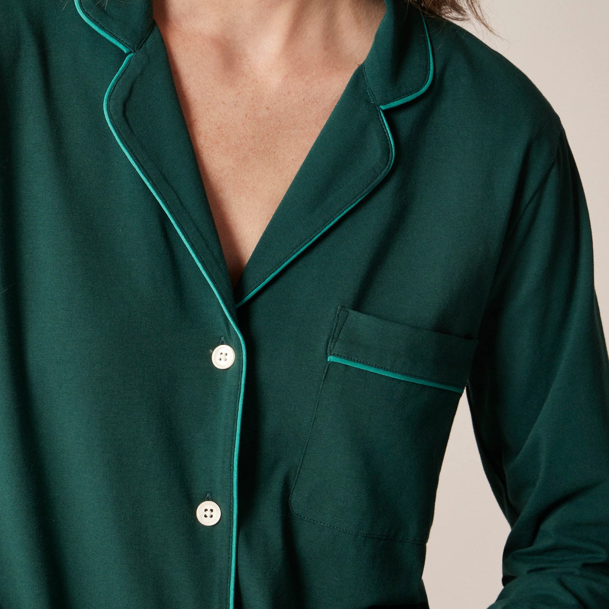 Meet the new dreamy pj's . . . Our customer-favorite sleep fabric is now crafted from cotton with a hint of stretch for a more substantial feel that reminds us of heritage styles. But don't worry; it's still supersoft and breathable too. This set comes with an easy button-up shirt and drapey pants that have a drawstring at the waist.