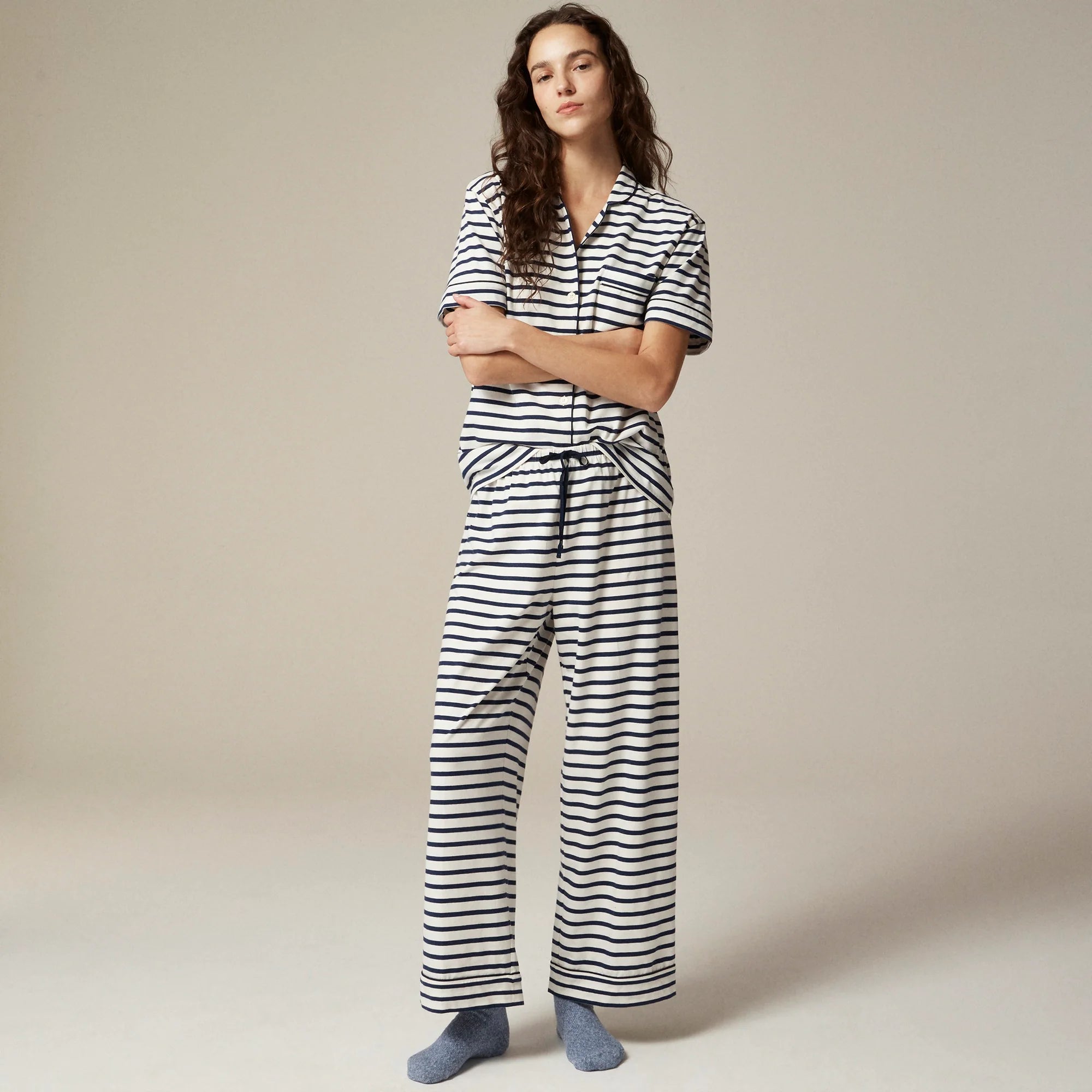 Meet the new dreamy pj's. . .Our customer-favorite sleep fabric is now crafted from cotton with a hint of stretch, for a more substantial feel that reminds us of heritage styles. But don't worry, it's still supersoft and breathable too. This set comes with an easy button-up shirt and drapey pants that have a drawstring at the waist.