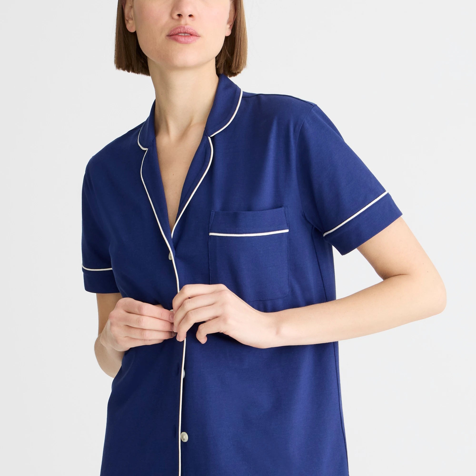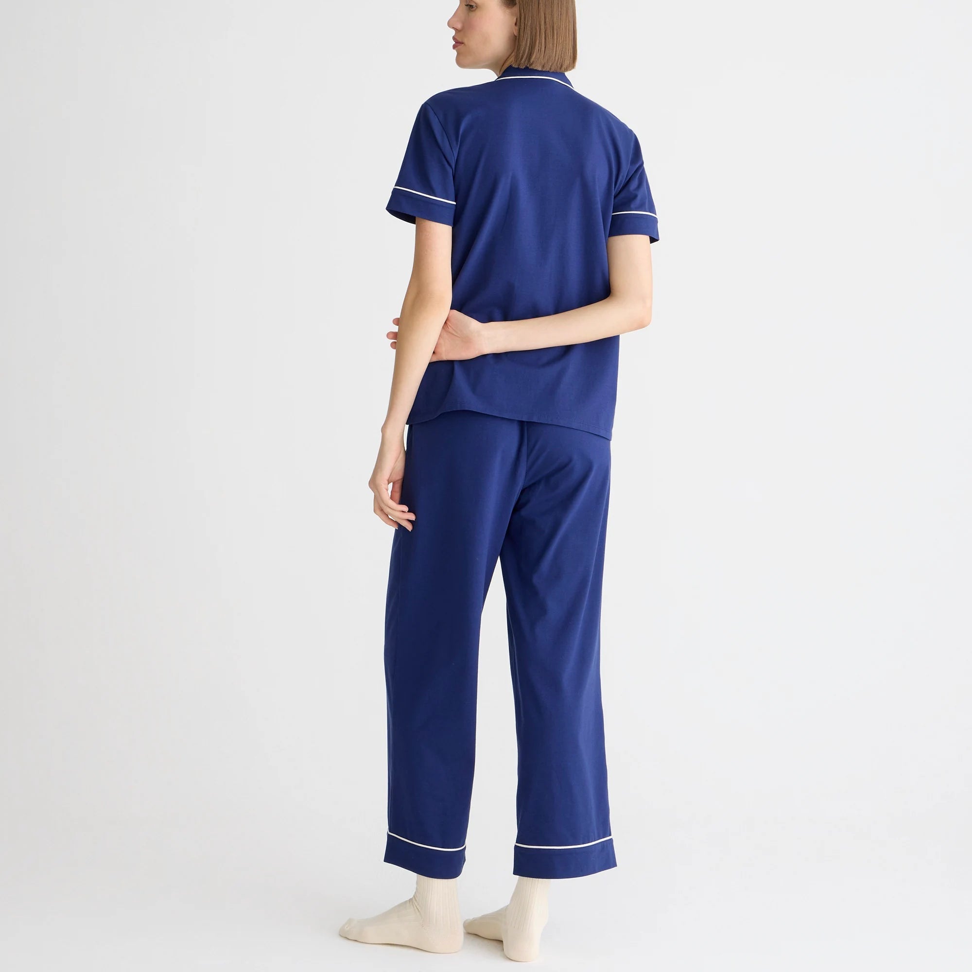 Meet the new dreamy pj's. . . Our customer-favorite sleep fabric is now crafted from cotton with a hint of stretch for a more substantial feel that reminds us of heritage styles. But don't worry; it's still supersoft and breathable too. This set comes with an easy button-up shirt and drapey pants that have a drawstring at the waist.