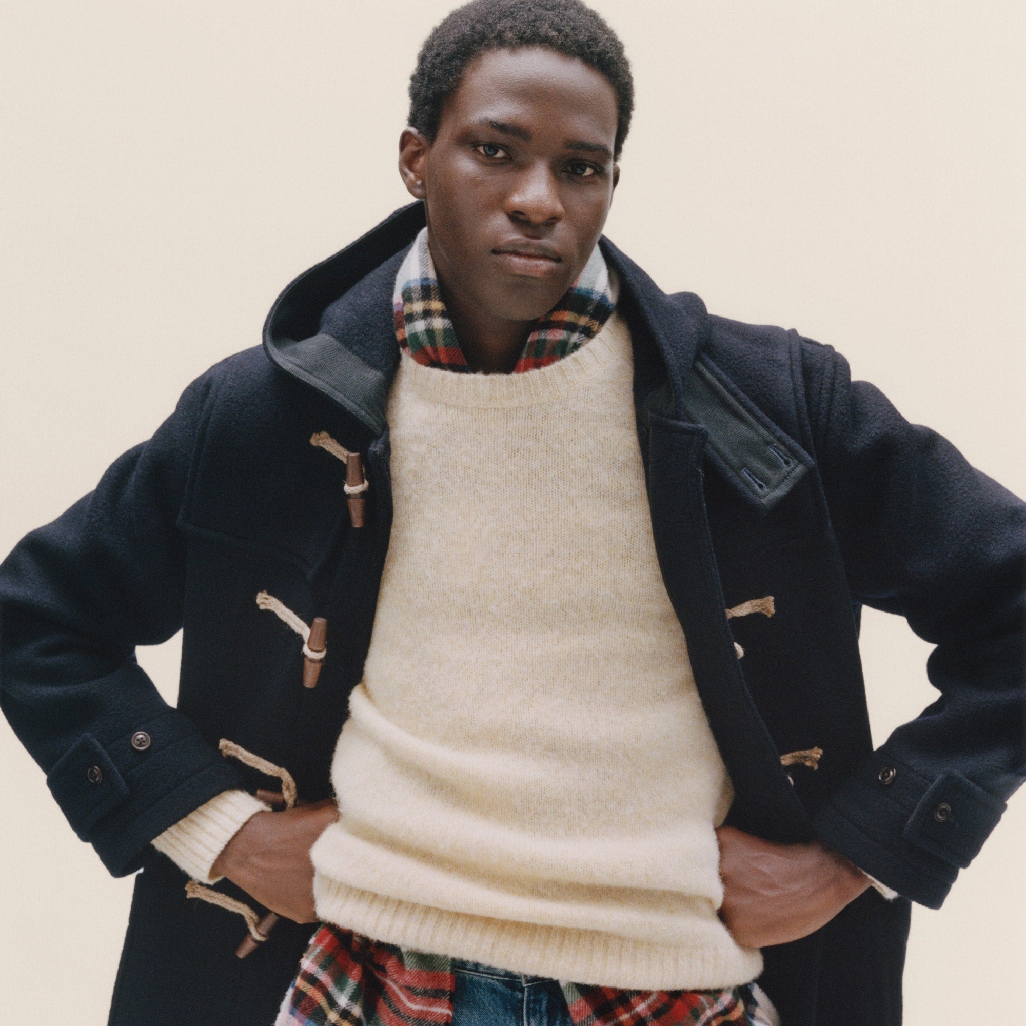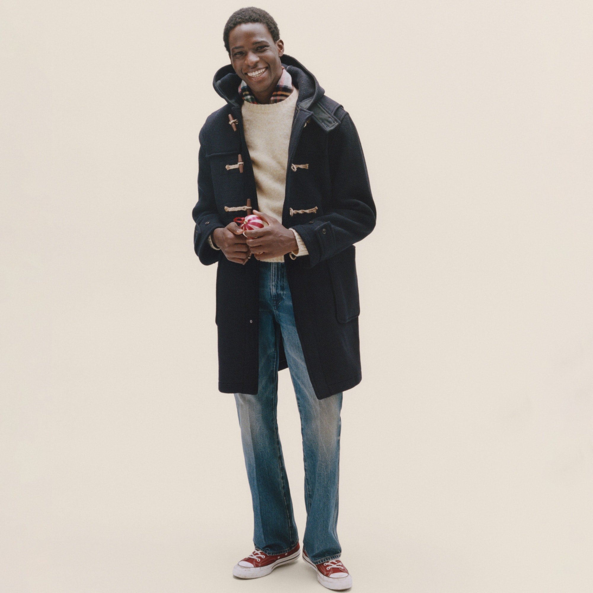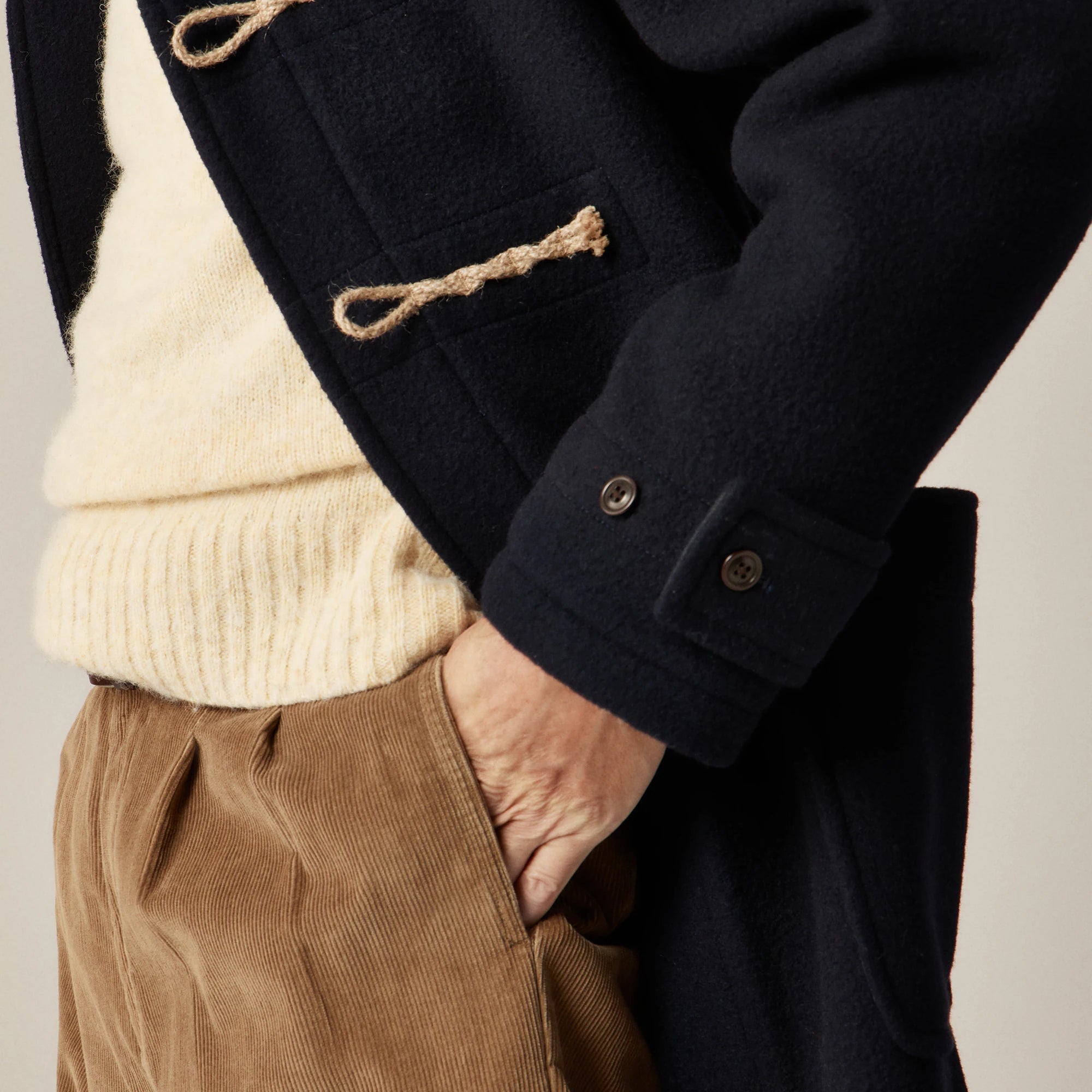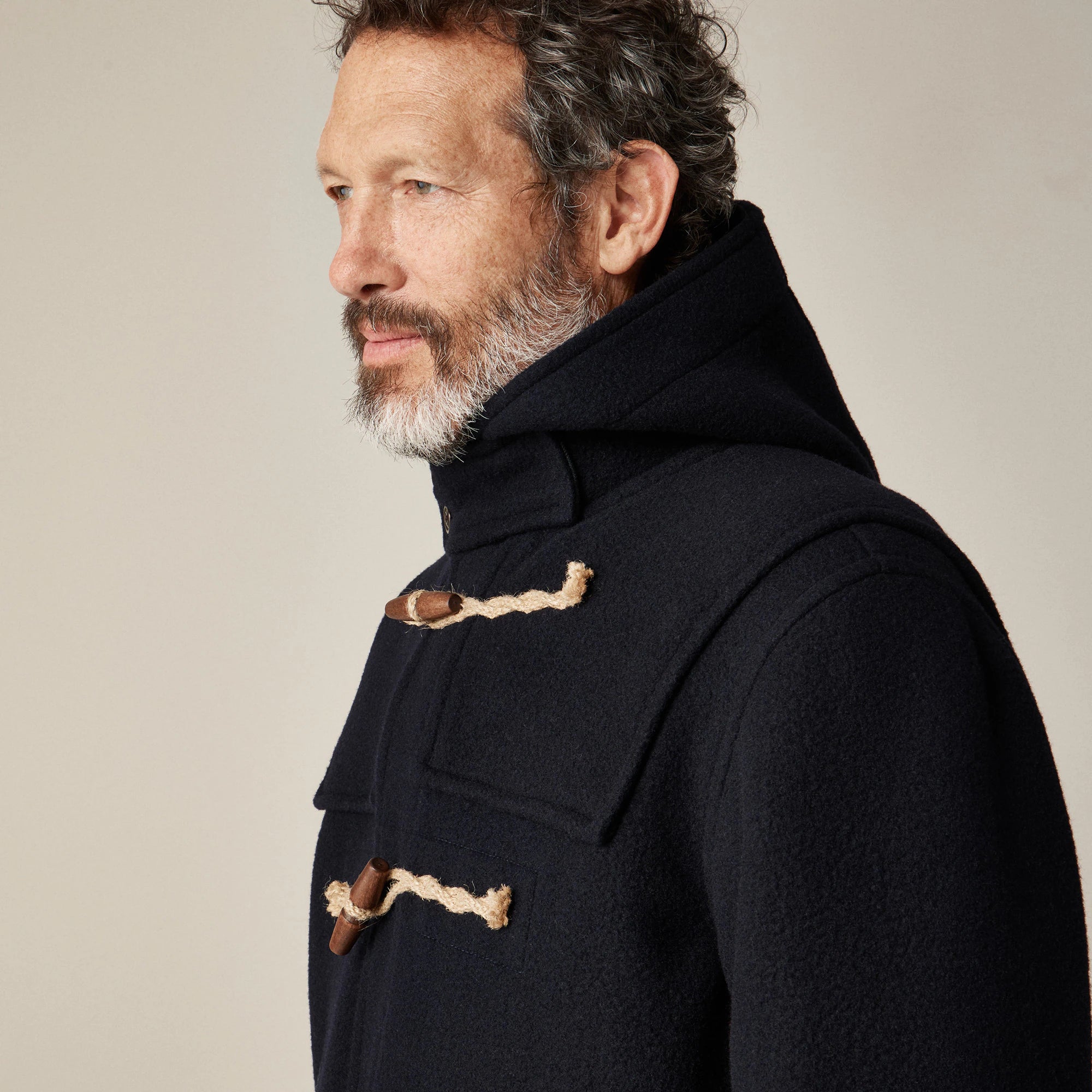 A timeless outerwear staple inspired by 19th-century originals. This coat comes with classic toggle closures made of jute rope, roomy patch pockets and a hood for extra practicality. Made from 100 percent wool, it's designed in a fit that layers comfortably over sweaters or tailored pieces, making it a versatile cold-weather go-to.