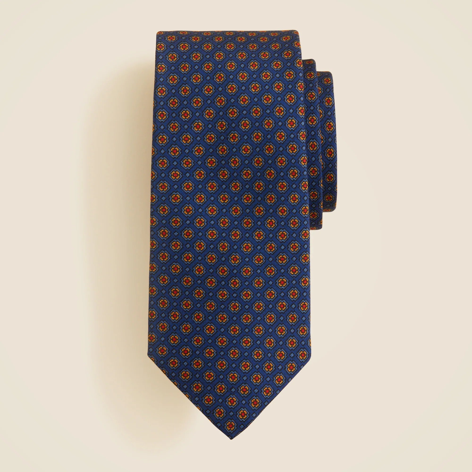 Our ties are handmade in Long Island City, New York, by skilled craftsmen who have been making ties since 1957. Every single tie is hand stitched, which means they're more flexible and easier to tie than machine-made ties. This one is crafted in fine silk from the English mill Adamley Textiles, which has specialized in printed-fabric production for over half a century.