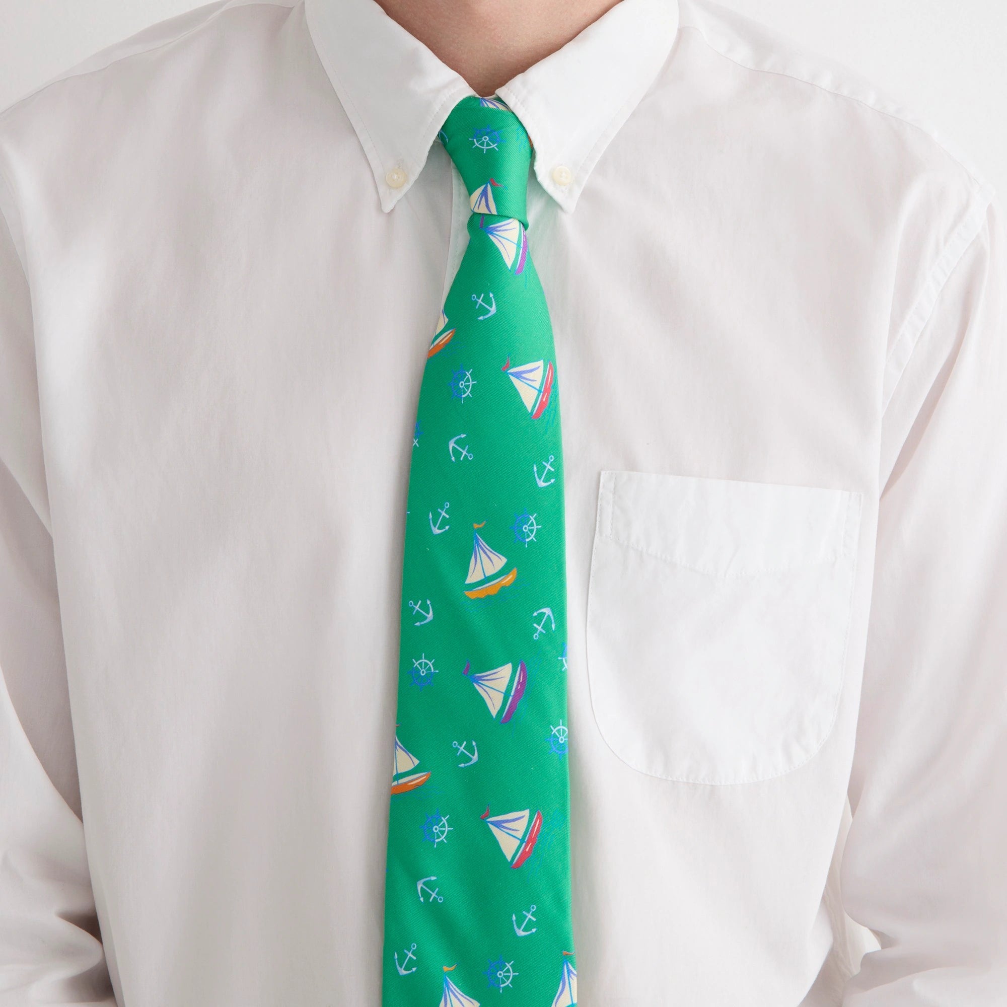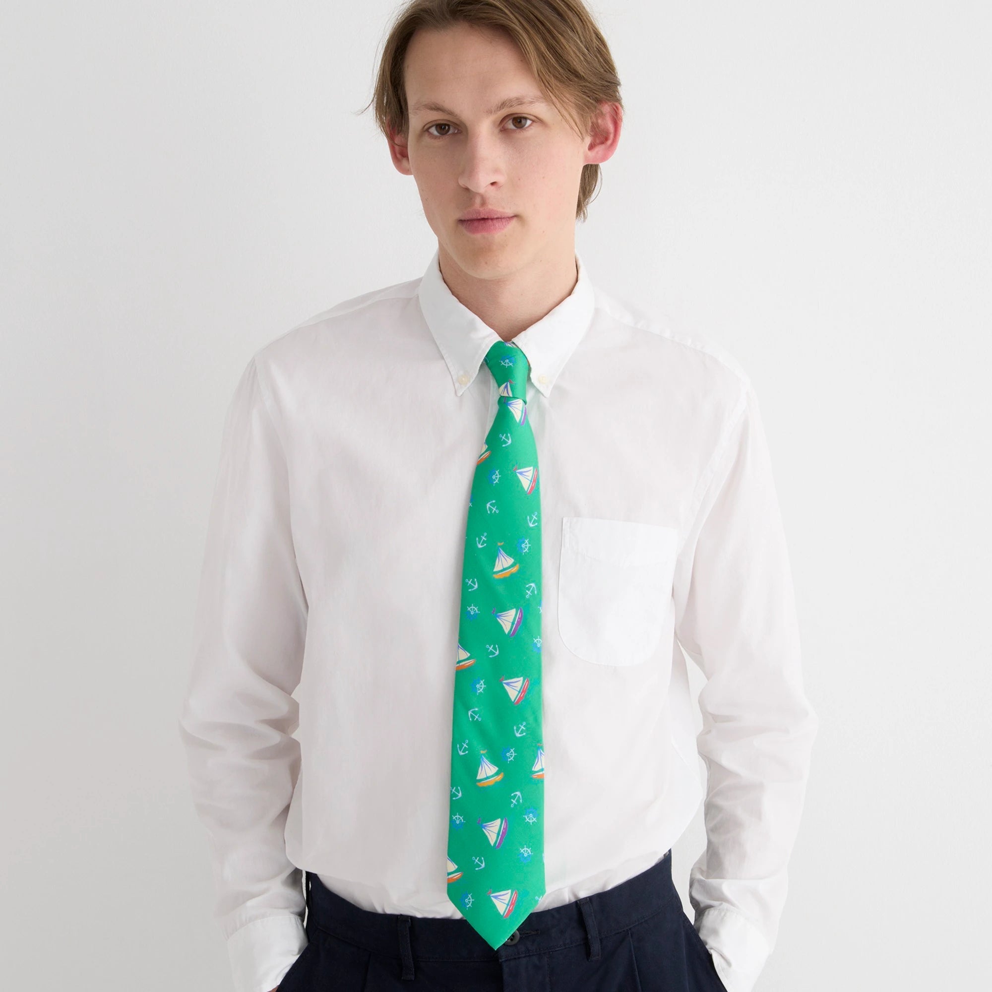 Our ties are handmade in Long Island City, New York, by skilled craftsmen who have been making ties since 1957. Every single tie is hand-stitched, which means they're more flexible and easier to tie than machine-made ties. This one is crafted in the finest patterned silk from the English mill Adamley Textiles, which has specialized in printed-fabric production for over half a century.