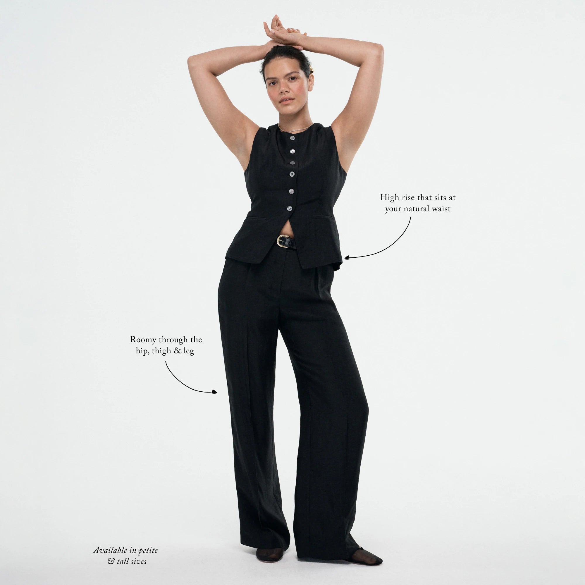 The pant that takes after its name. . .We gave our top-rated trouser a bit of an upgrade, with a slightly wider leg and a relaxed, uncuffed hem. Plus, these are crafted from our textured satin, which has a precrinkled look that looks great right out of a suitcase.