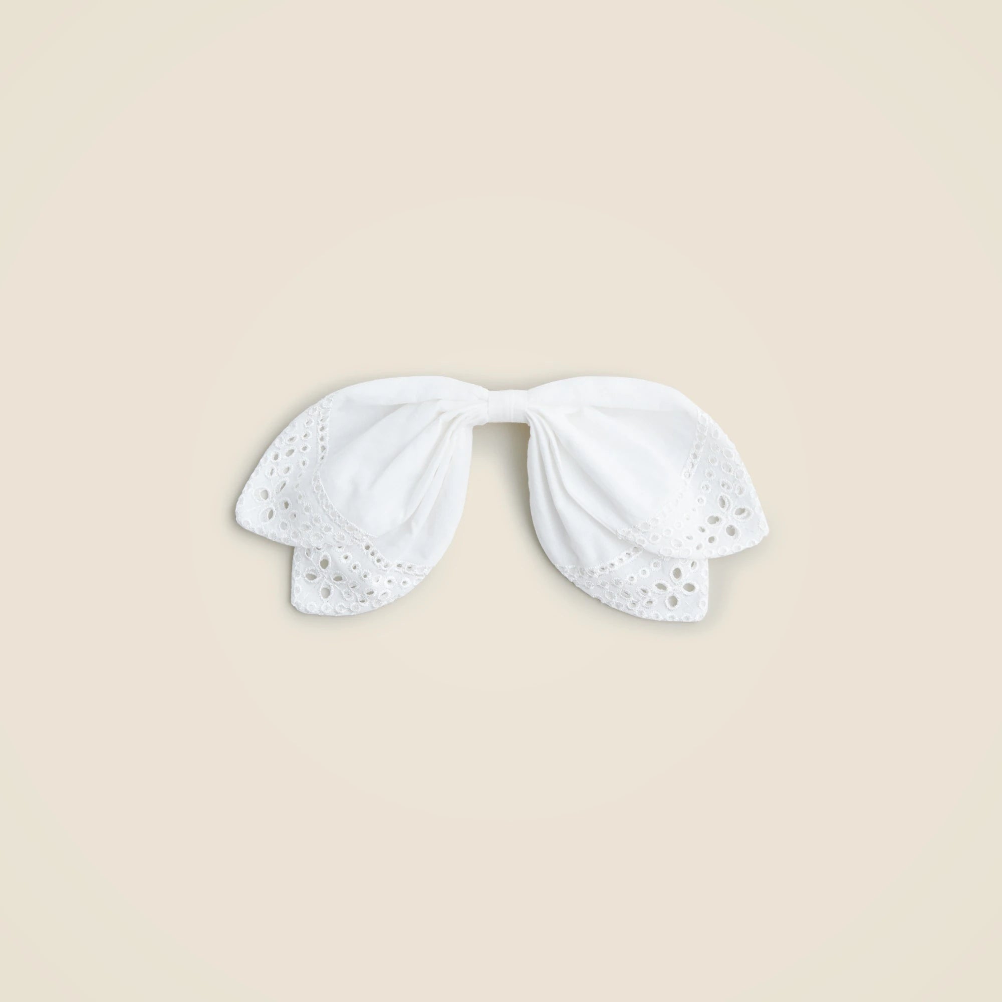The perfect hair accessory for all things summer. . .This bow clip makes a pretty statement with an oversized silhouette and layers of eyelet fabric.