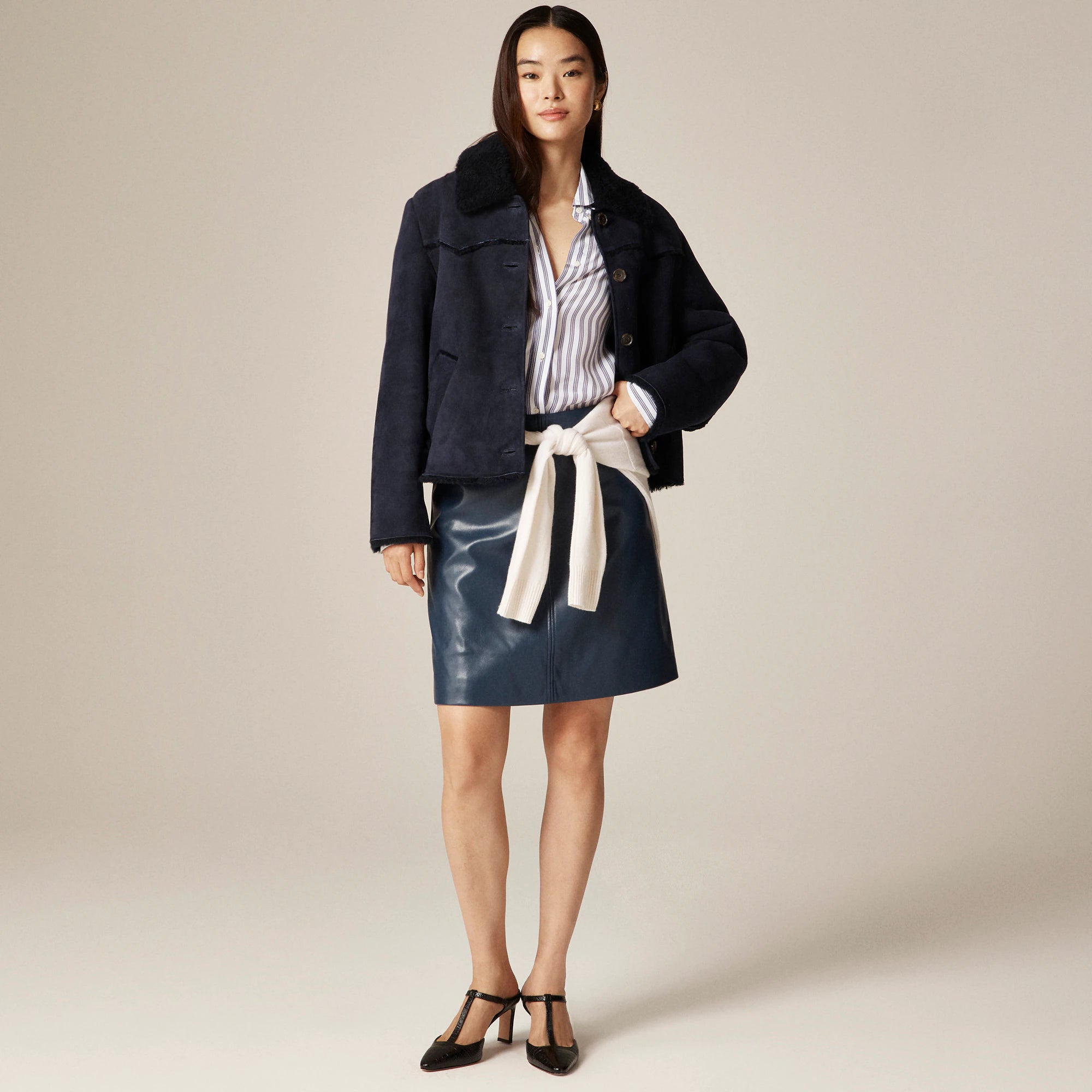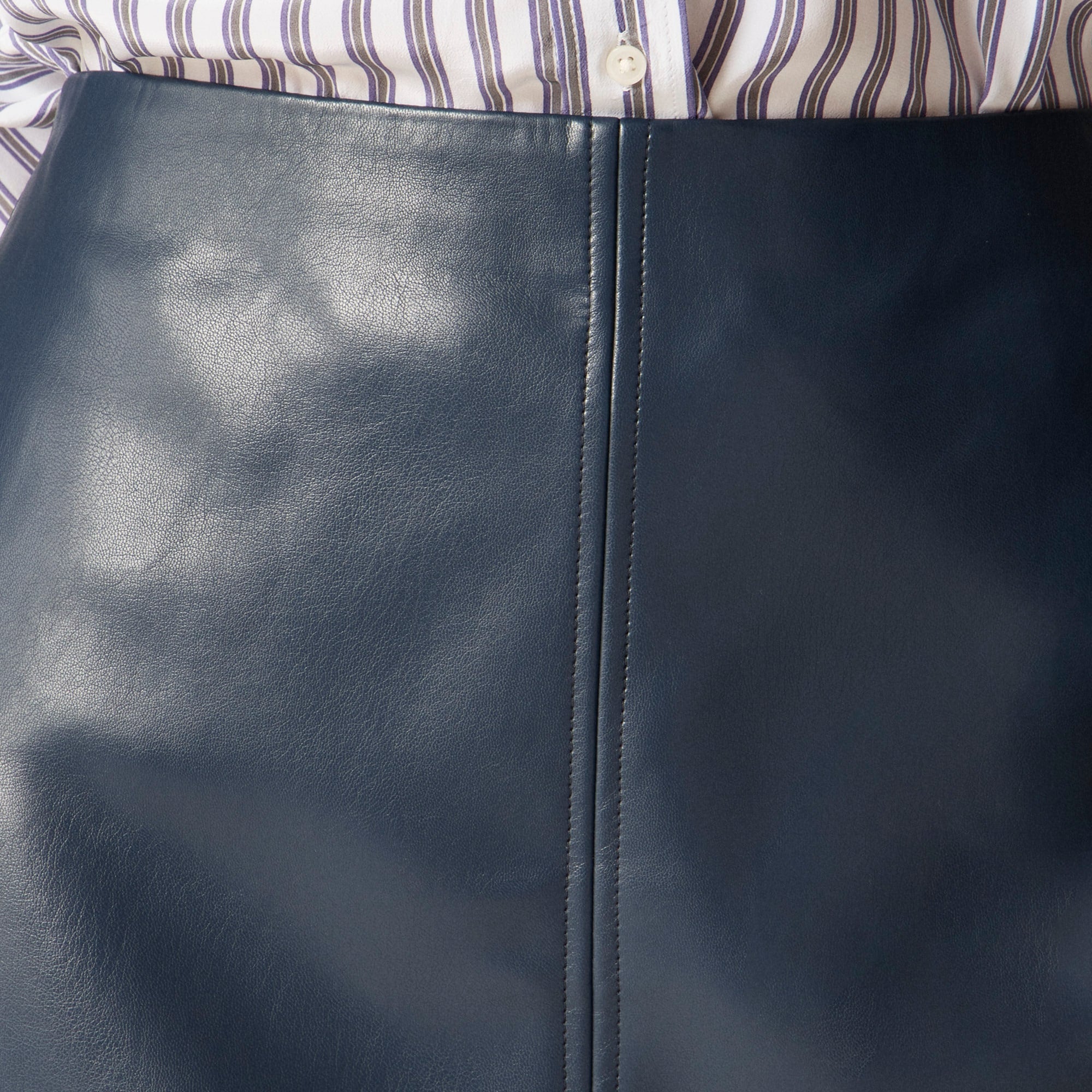 A classic skirt with a polished edge. Made to be paired with everything from tucked-in tees to tailored layers, this sleek style comes with standout seam details down the front and a smooth, fall-friendly faux-leather finish.