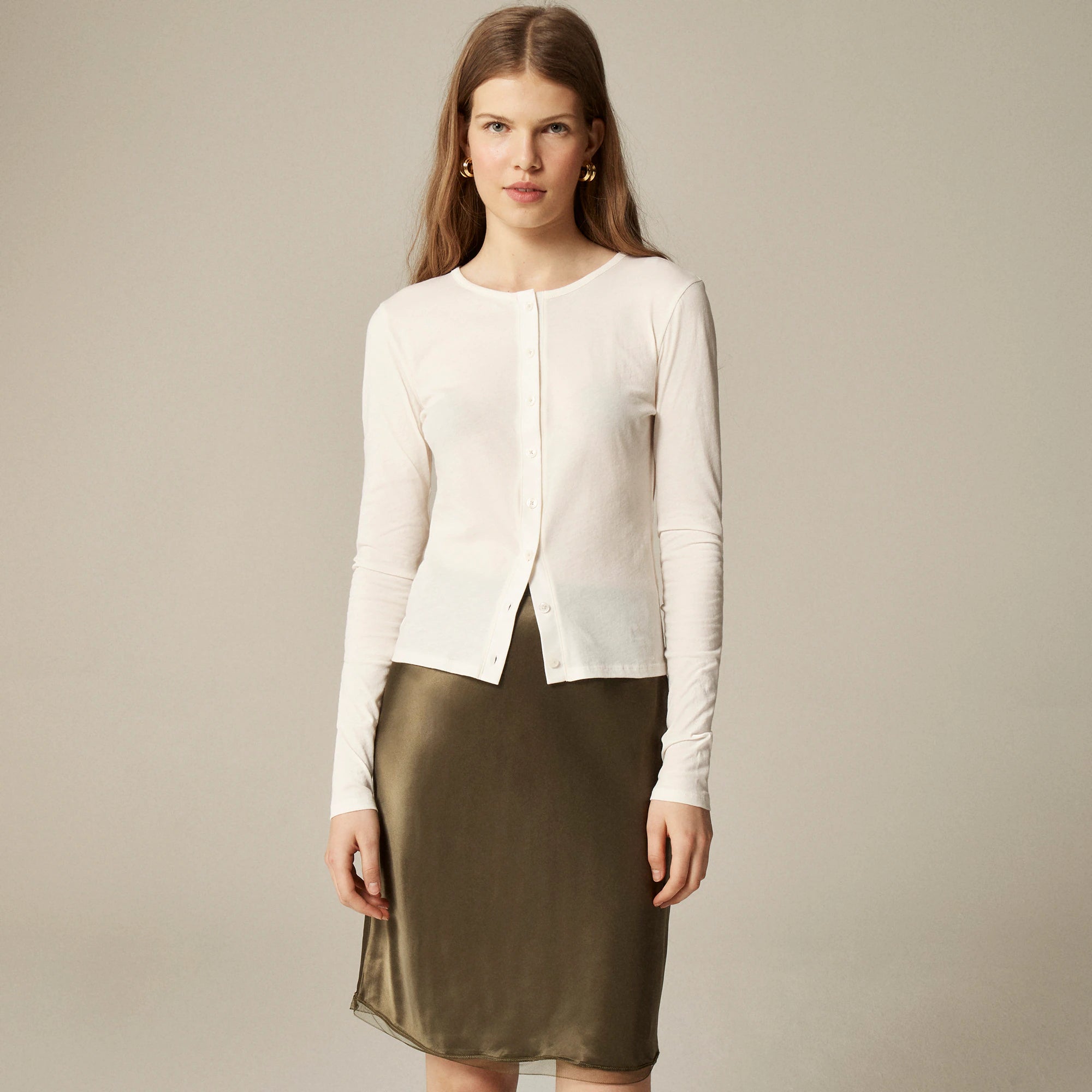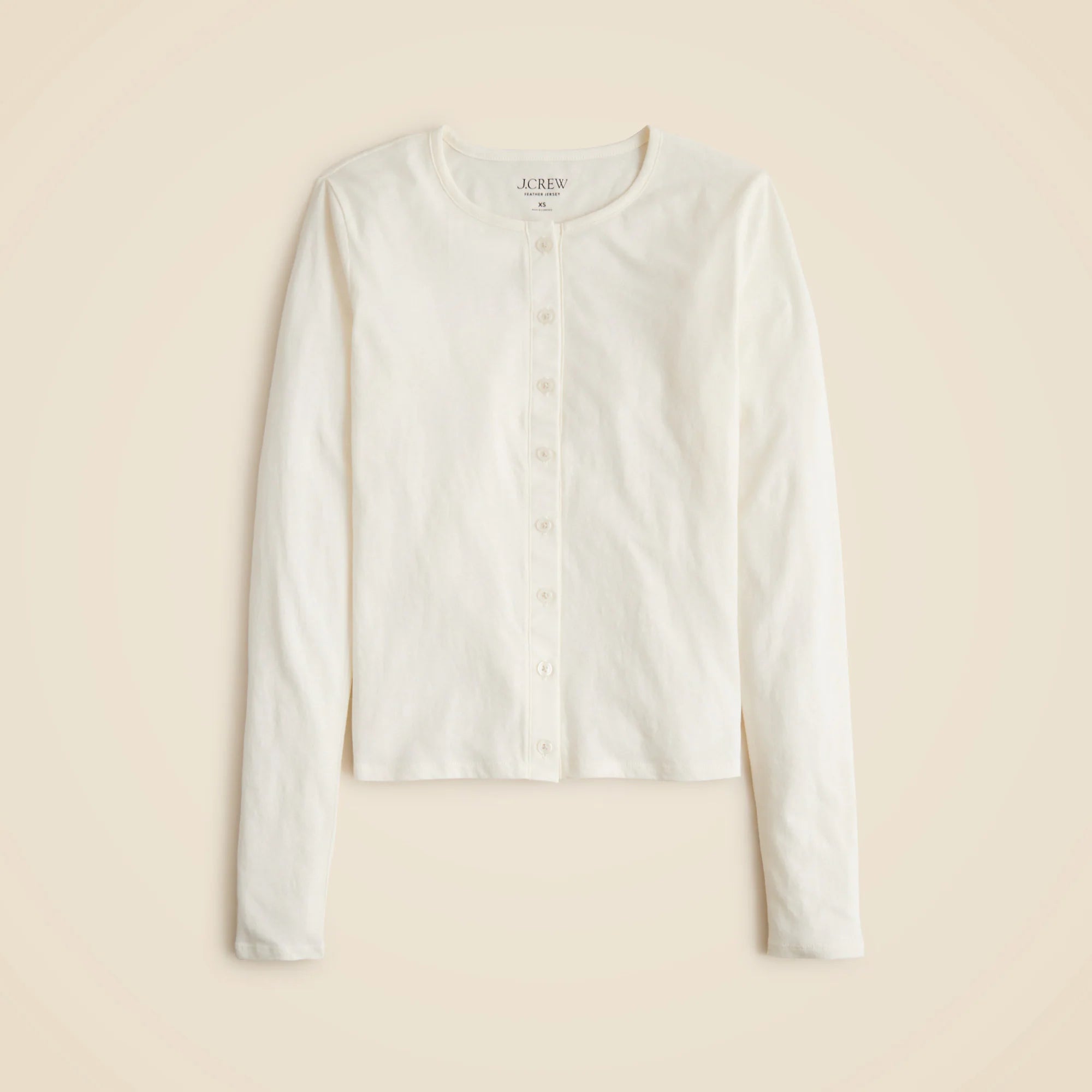 The softest way to top things off. This crewneck cardigan is crafted from our latest 100 percent cotton feather jersey fabric that's supersoft, drapey and lightweight. Designed in a classic silhouette with buttons down the front, it's lightweight enough to wear year-round and polished enough to sub in as a top.