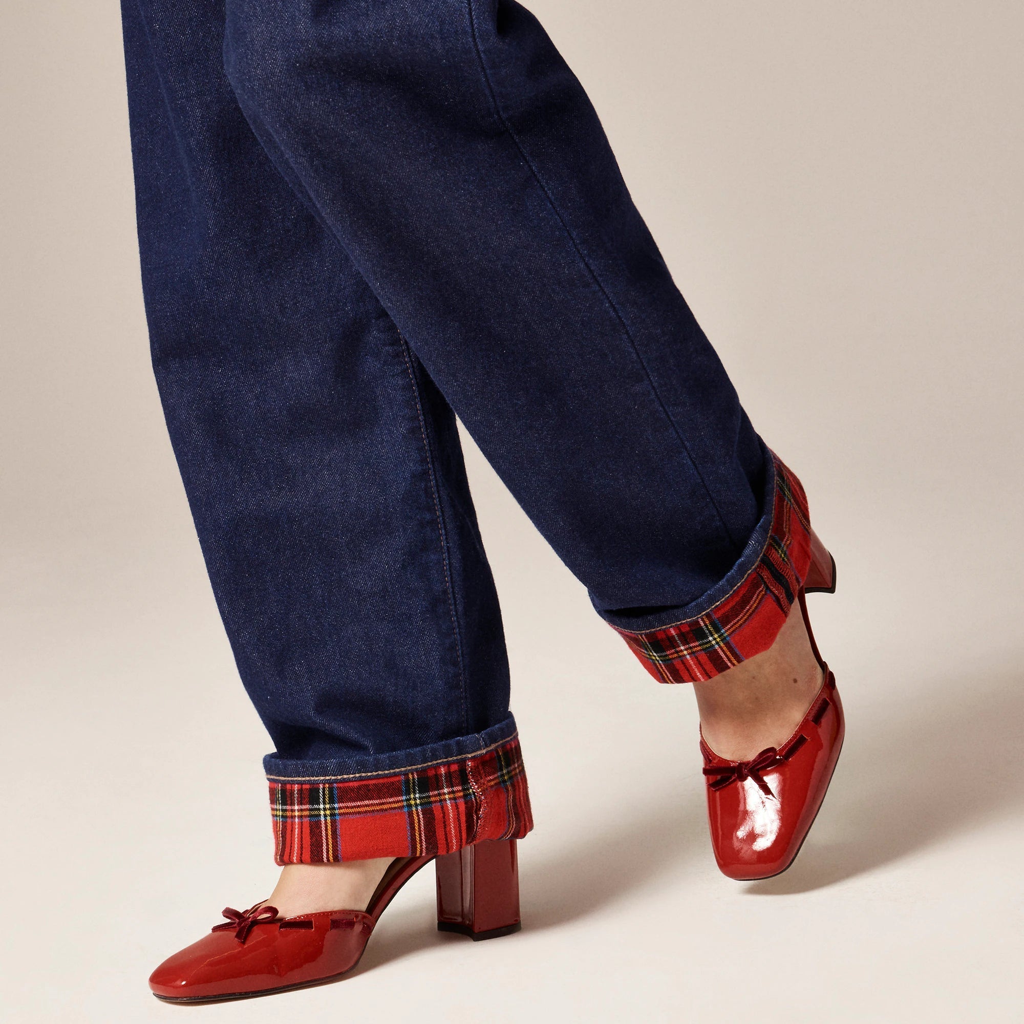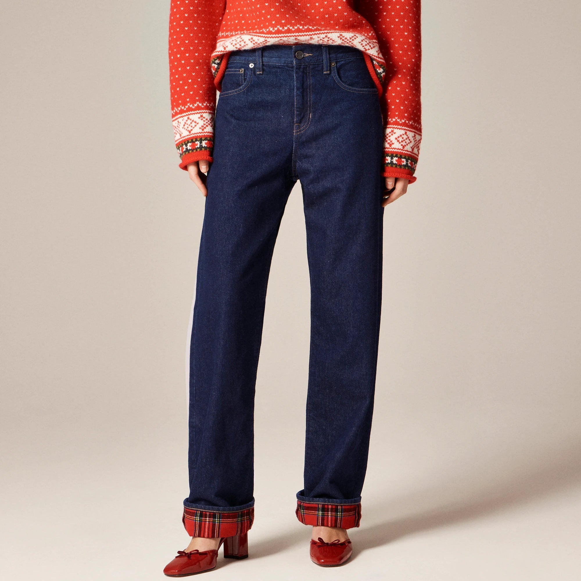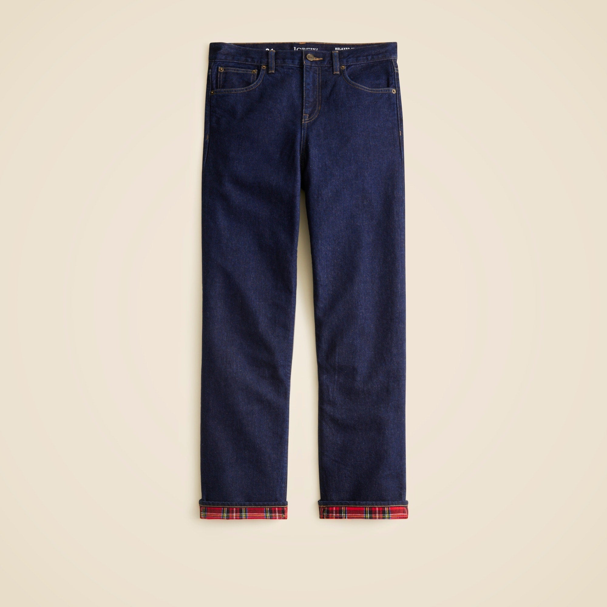 Polished and effortless, all at once. Based off of a pair of vintage men's jeans, this easygoing fit has a sleek, straight leg and a slouchy rise for an '80s-inspired vibe. Plus, it's crafted from 100 percent cotton denim with no added stretch for an old-school look and feel that molds to your shape over time (aka only gets better with every wear). But the best part? This pair is finished with a plaid flannel lining that adds some much-needed warmth and peeks out when they're worn cuffed.